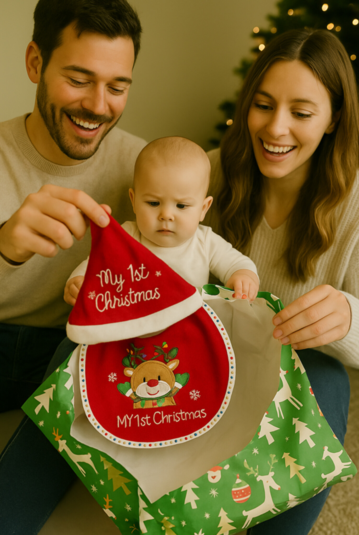 Maak de eerste kerst van je / een baby extra bijzonder met deze schattige kerstset!