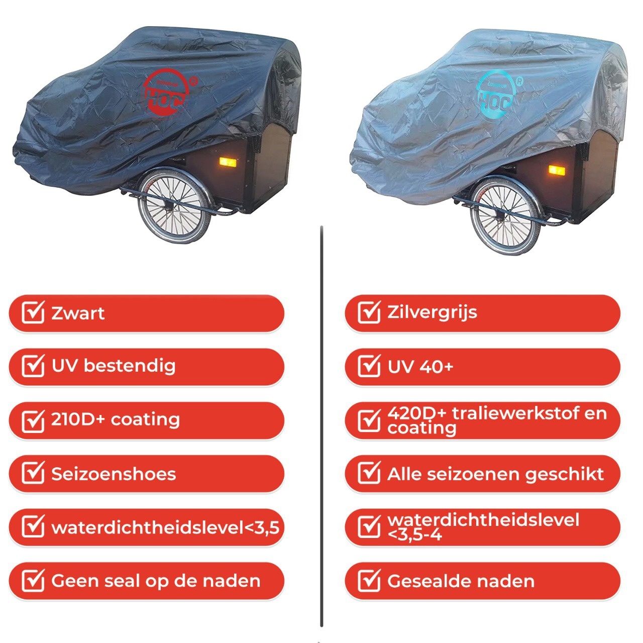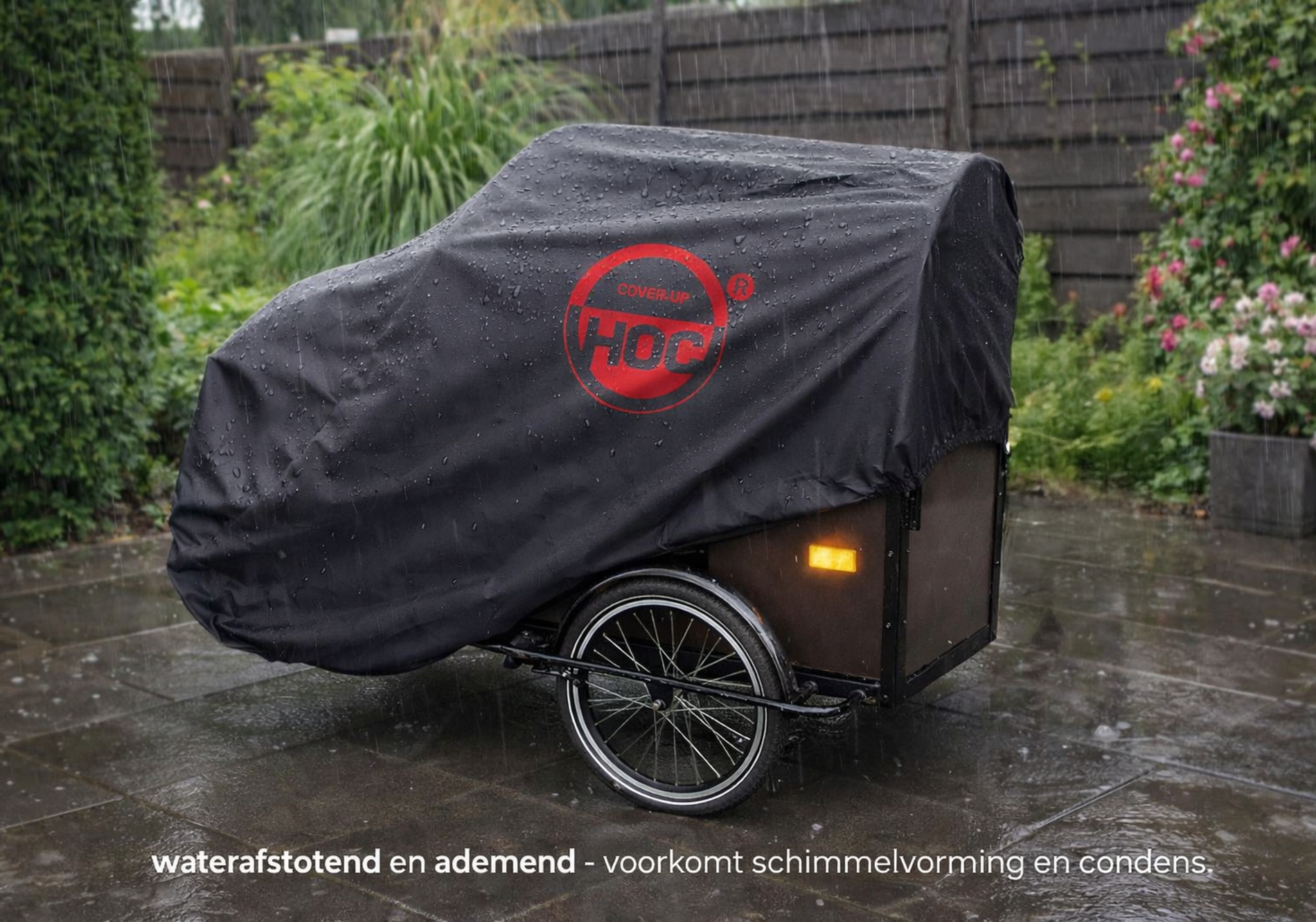 Dankzij de ademende stof wordt condensvorming beperkt en blijft uw bakfiets in goede conditie. De hoes heeft een slotgat voor gebruik met een kettingslot en wordt geleverd in een handige COVER UP HOC opbergzak.