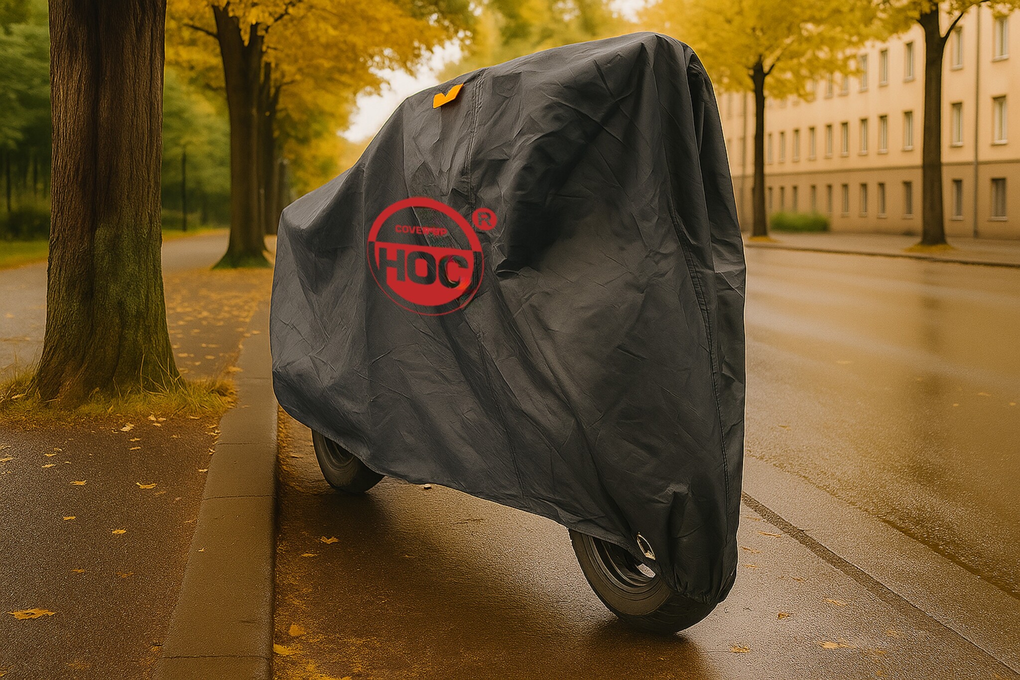 Deze zwarte COVER UP HOC brommerhoes is een eenvoudige bromfietshoes zeer licht van gewicht en beschermt uw snorfiets tegen onheilen van buitenaf. Ook beschikt de hoes over een slotgat om uw scooter met een kettingslot te beschermen.