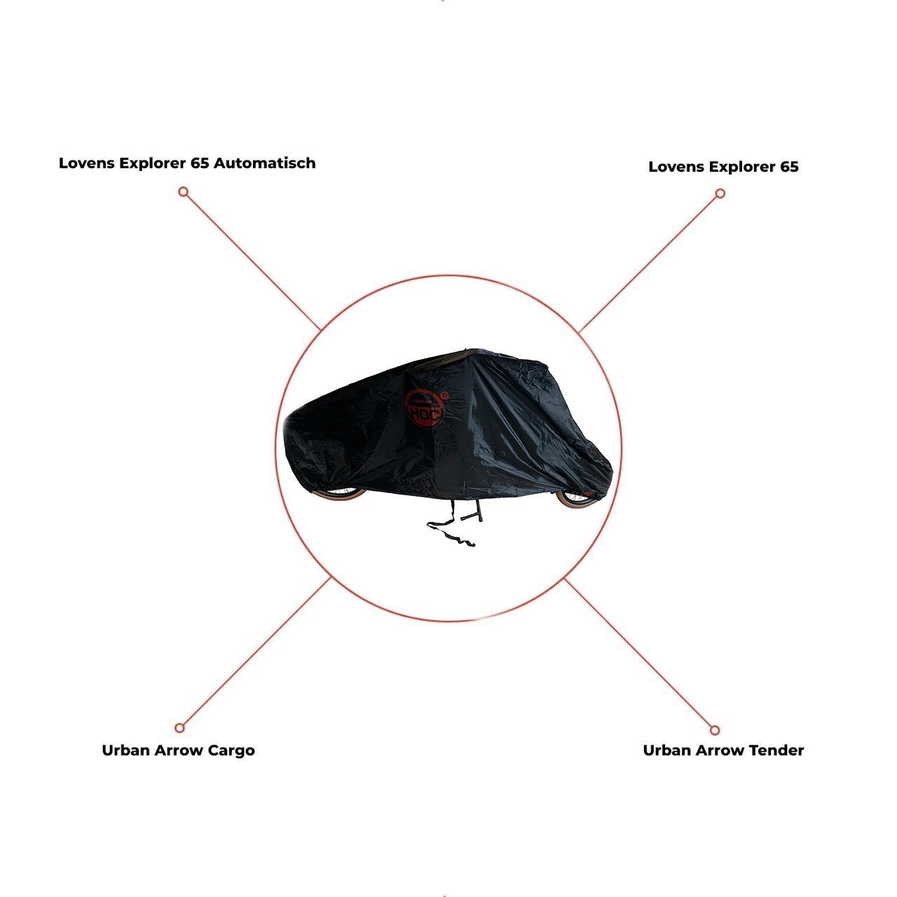 Geschikt voor o.a. (Twijfelt u of deze hoes geschikt is voor uw bakfiets, neem dan gerust contact op met onze klantenservice)