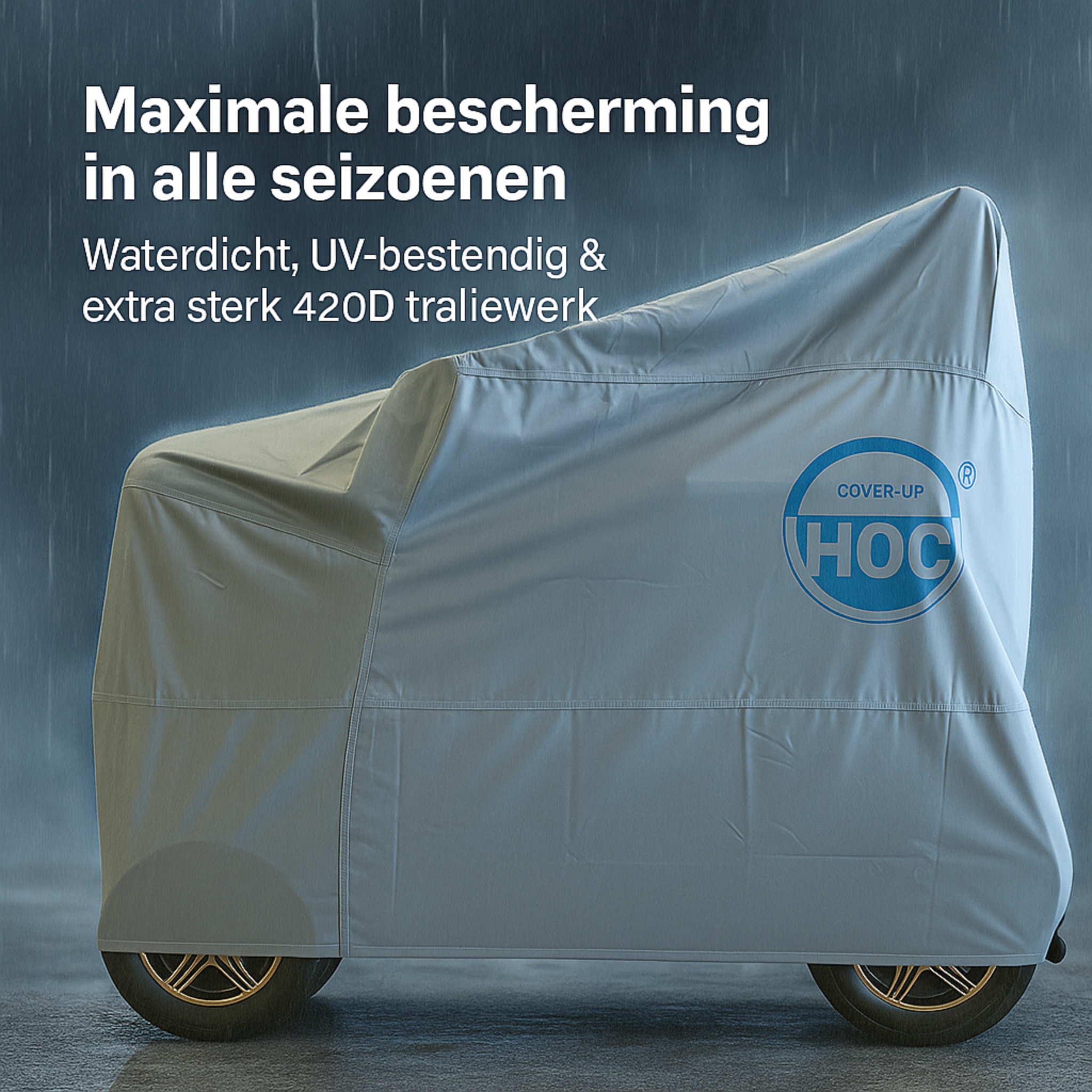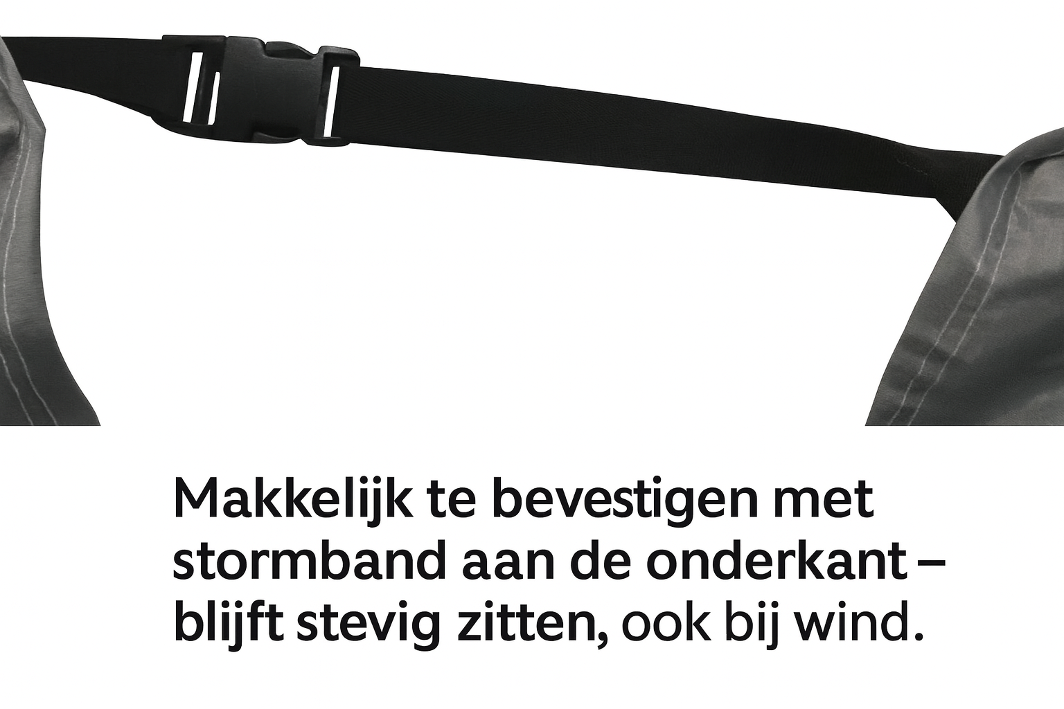 Let op! Een te grote hoes hangt op de grond en een te kleine past niet. Kijk en meet! Neem de afmeting en neem zo een 5-10 cm speling. Daarnaast moet de hoes altijd zo een 10 tot 20 cm boven de grond komen. Hierdoor ventileert de hoes het best. Kom je er niet uit, neem even contact met ons op.