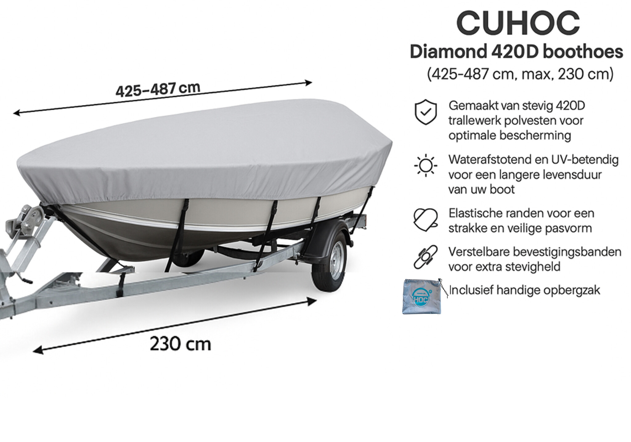 ✔ Geschikt voor boten van 425-487 cm lengte en max. 230 cm breedte