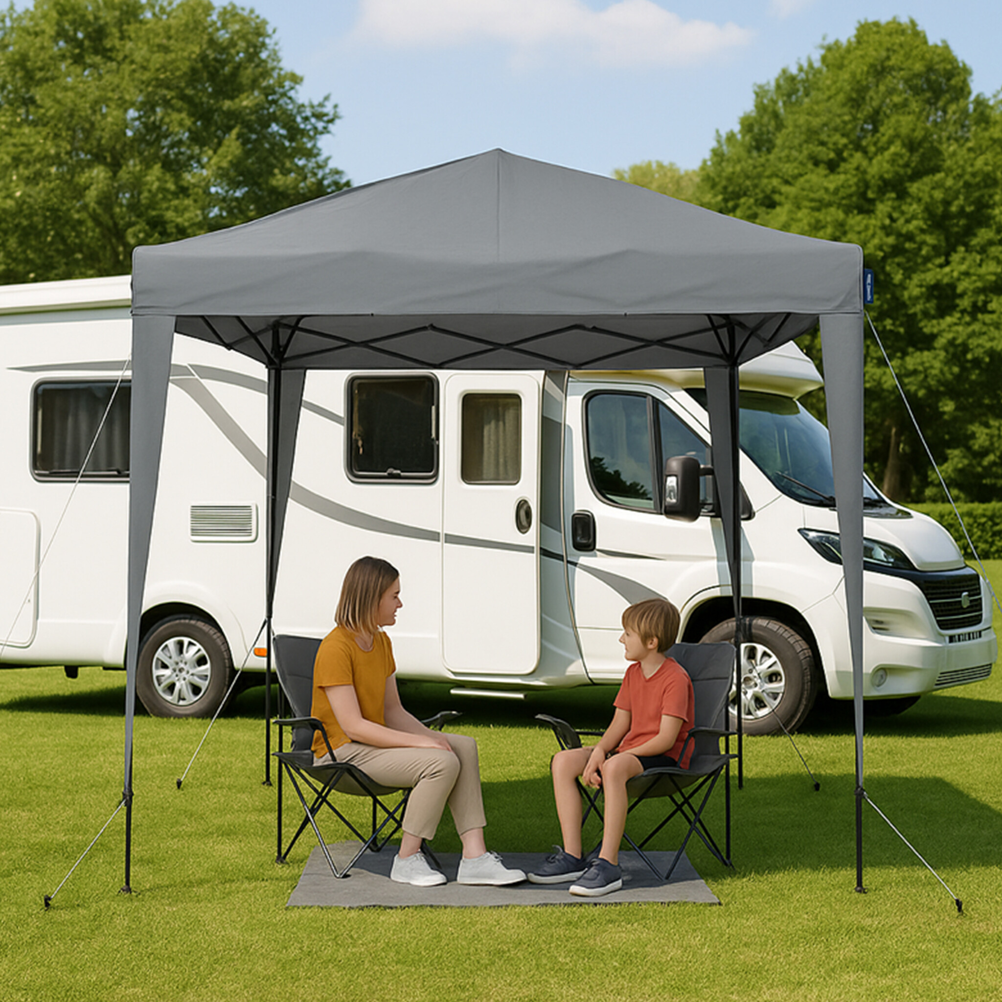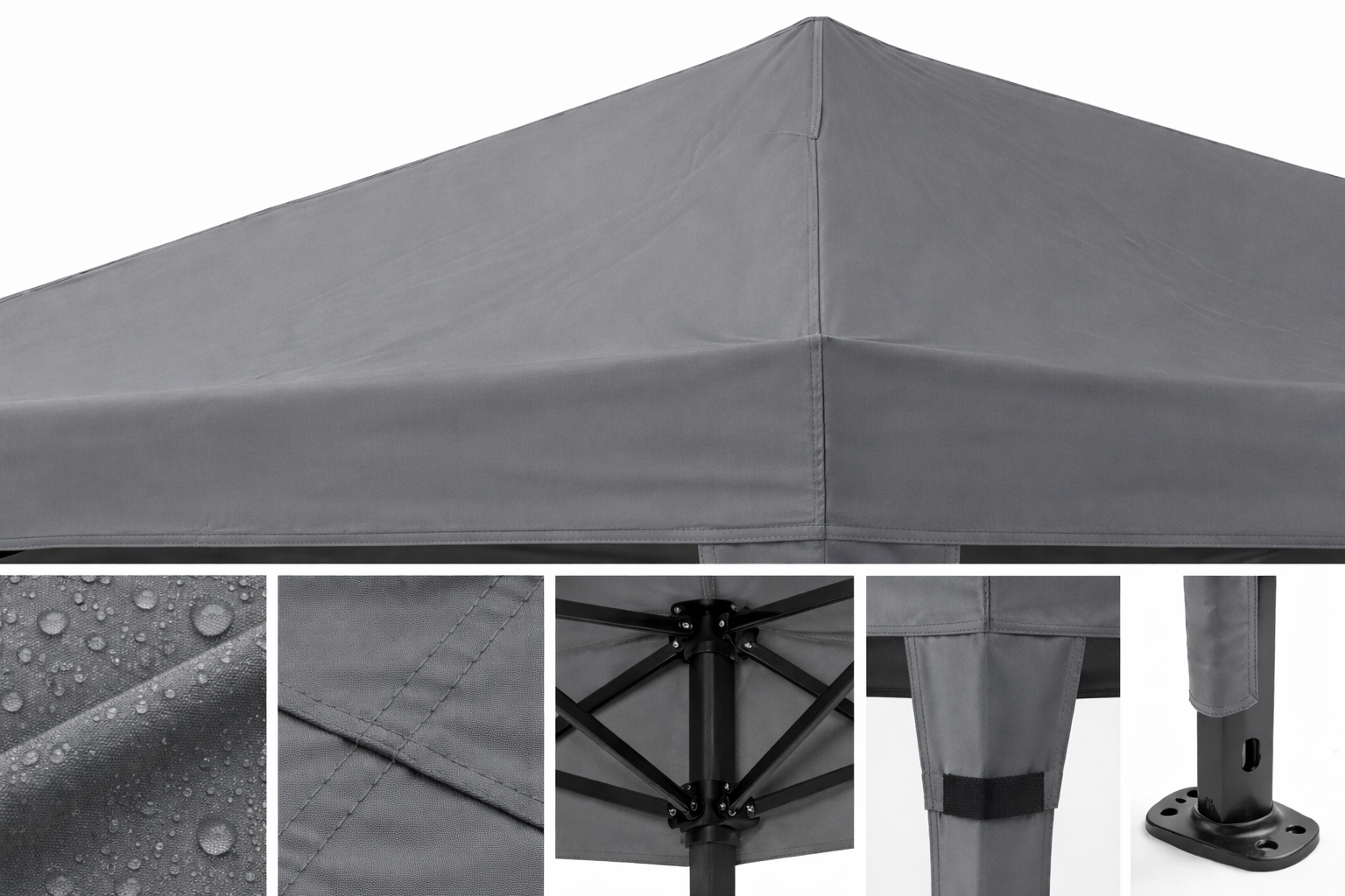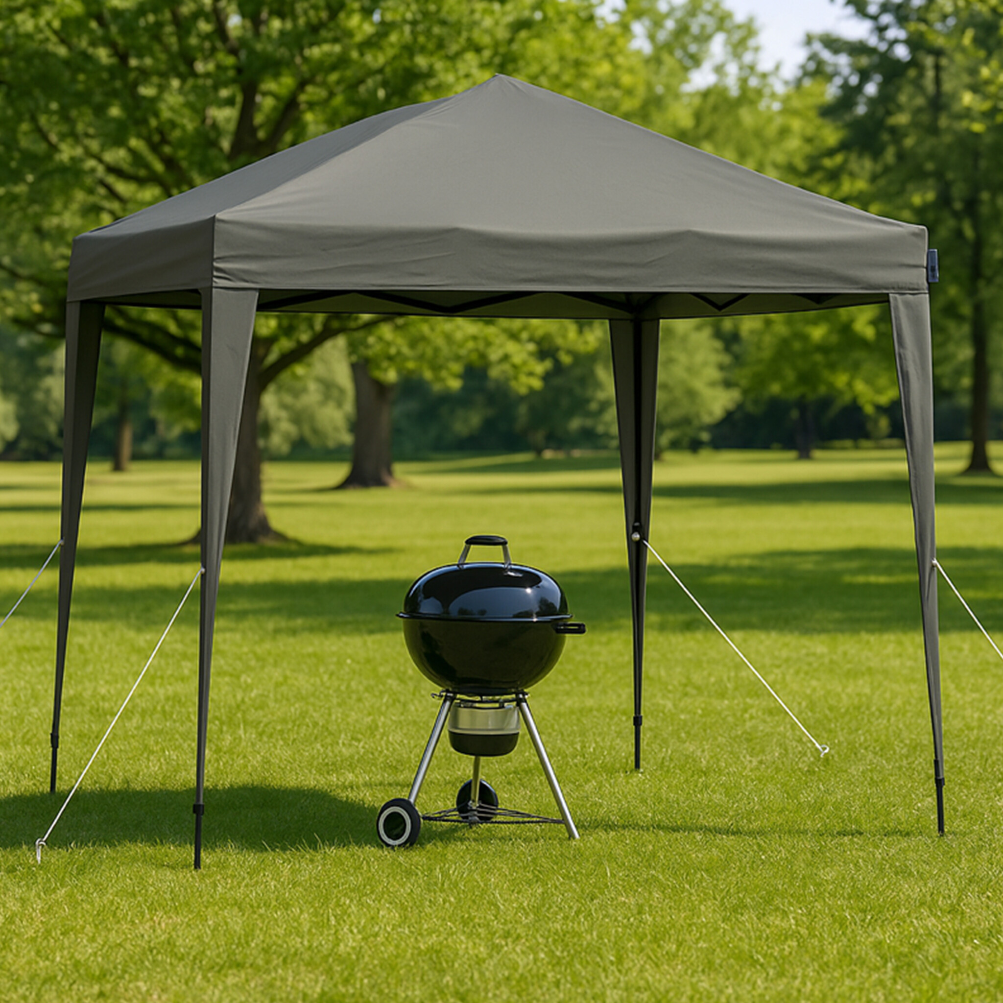 Deze lichtgewicht tent is eenvoudig mee te nemen in de bijgeleverde draagtas en neemt weinig ruimte in beslag. De moderne grijze kleur geeft de tent een luxe uitstraling die past in elke tuin.