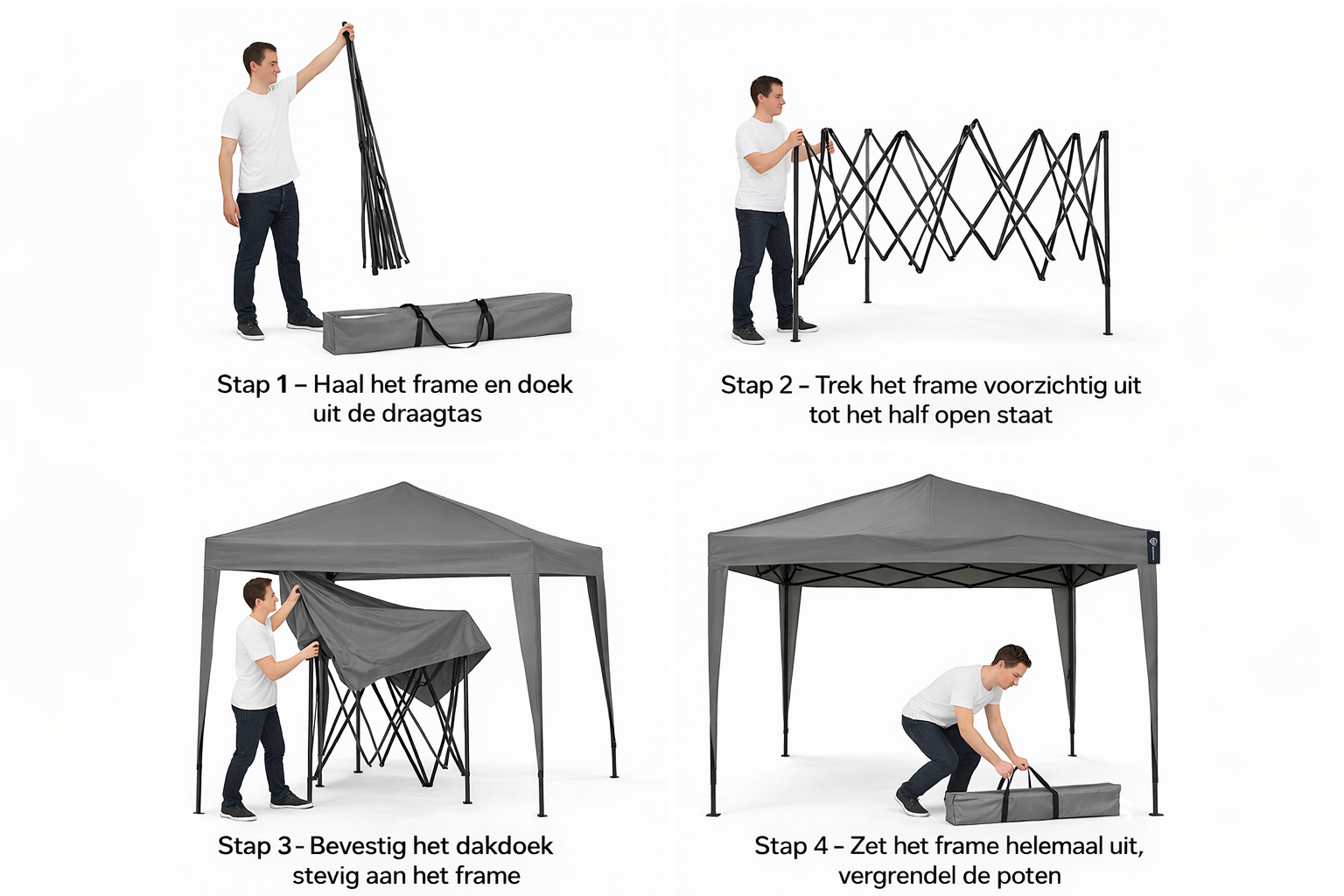 Ben je op zoek naar een praktische en betaalbare partytent voor een tuinfeest, BBQ of ander buitenmoment? De CUHOC Easy-Up partytent 3x3 meter in grijs is de perfecte oplossing. Dankzij het harmonicasysteem zet je deze partytent in enkele minuten op, zonder gedoe met losse onderdelen. Ideaal voor tijdelijk gebruik bij zonnig of licht bewolkt weer.