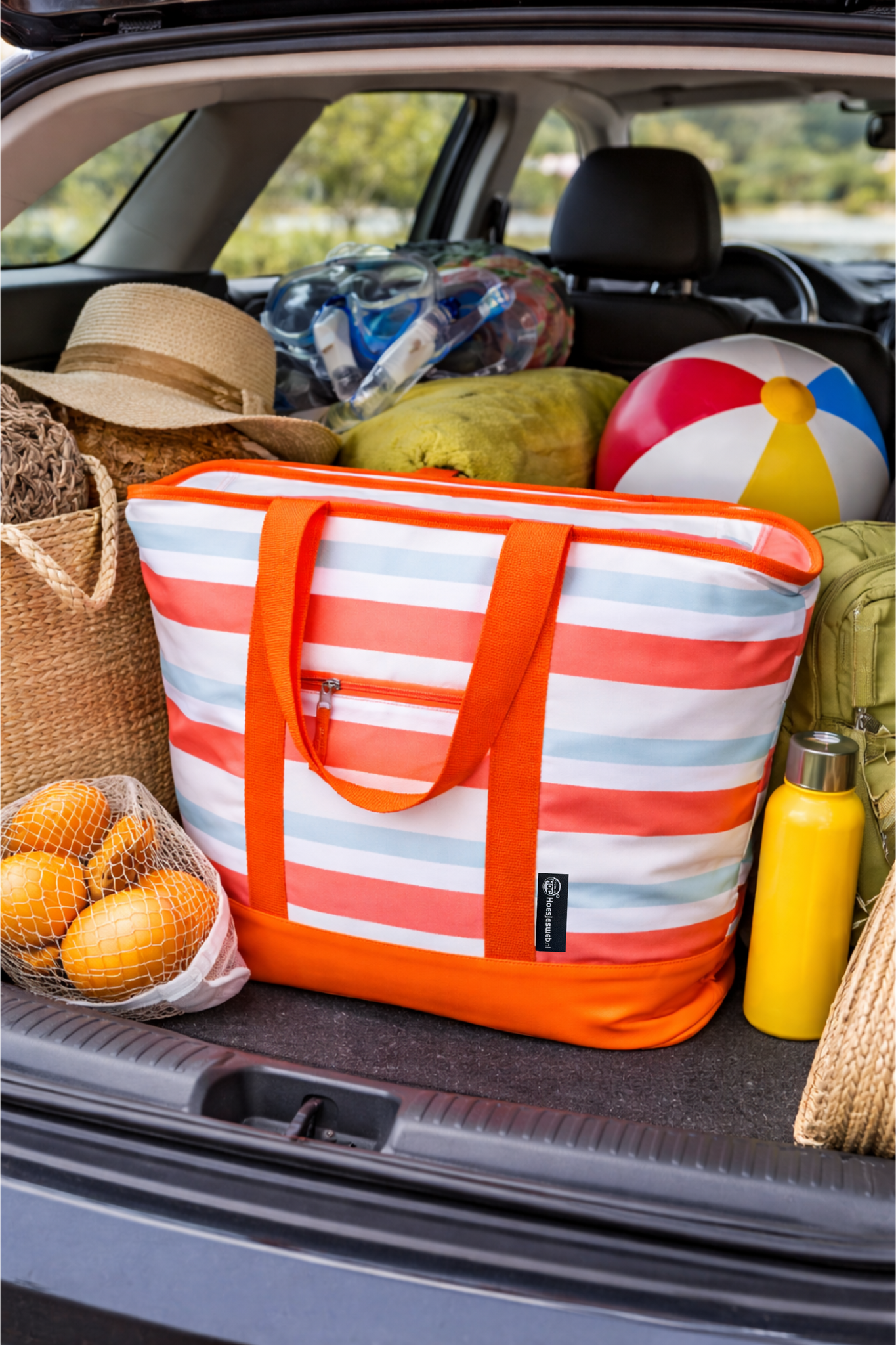 Deze koeltas shopper is geschikt voor het strand, picknick, vakantie, boodschappen en festivals en combineert functionaliteit met een frisse zomerse uitstraling.