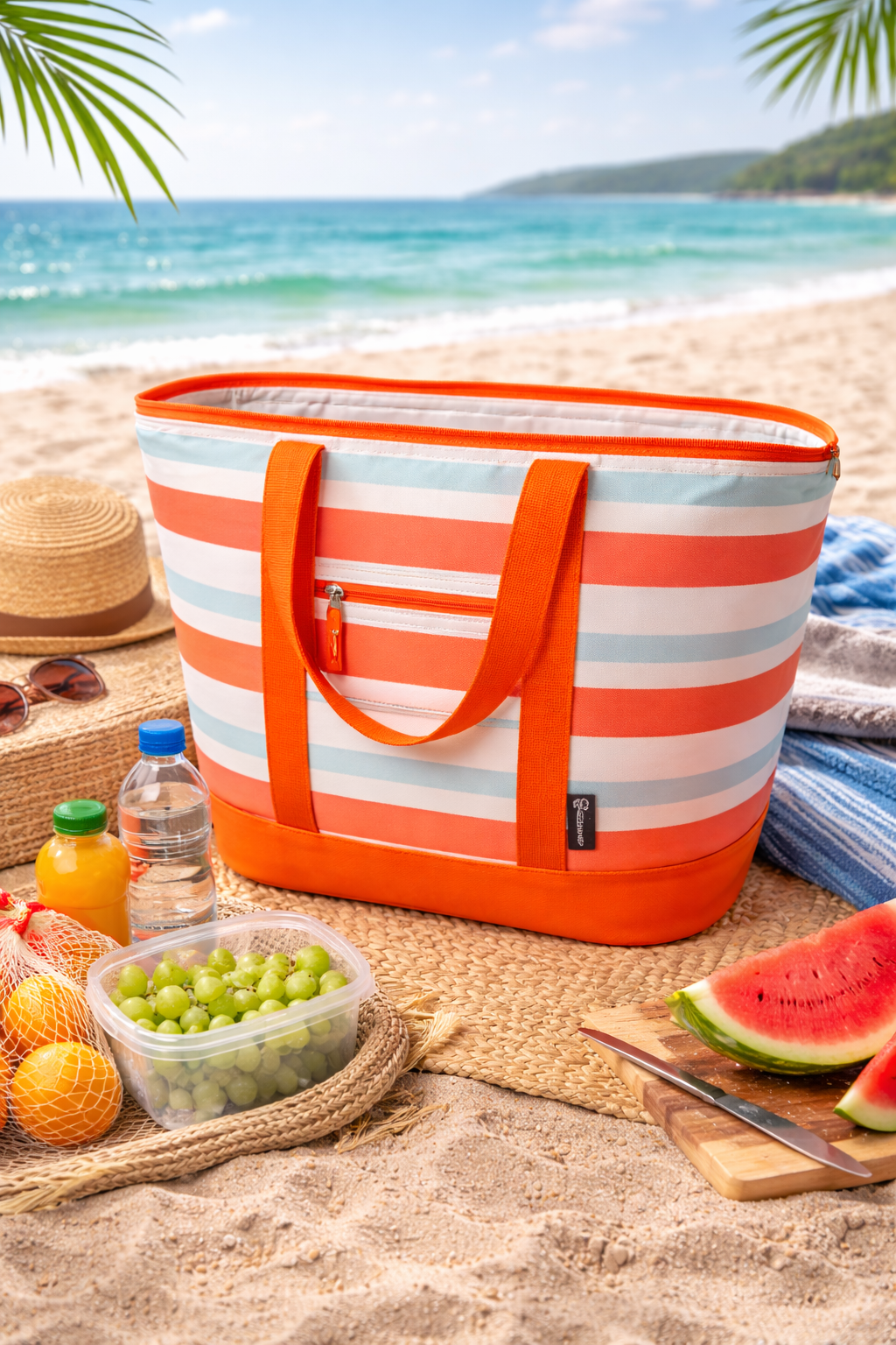 De CUHOC Koeltas 24 liter is een ruime en stijlvolle strandtas met koelvak, ontworpen voor zomerse dagen, picknicks en dagelijkse boodschappen. Dankzij de combinatie van een modern gestreept design en hoogwaardige materialen is deze koeltas zowel praktisch als duurzaam.