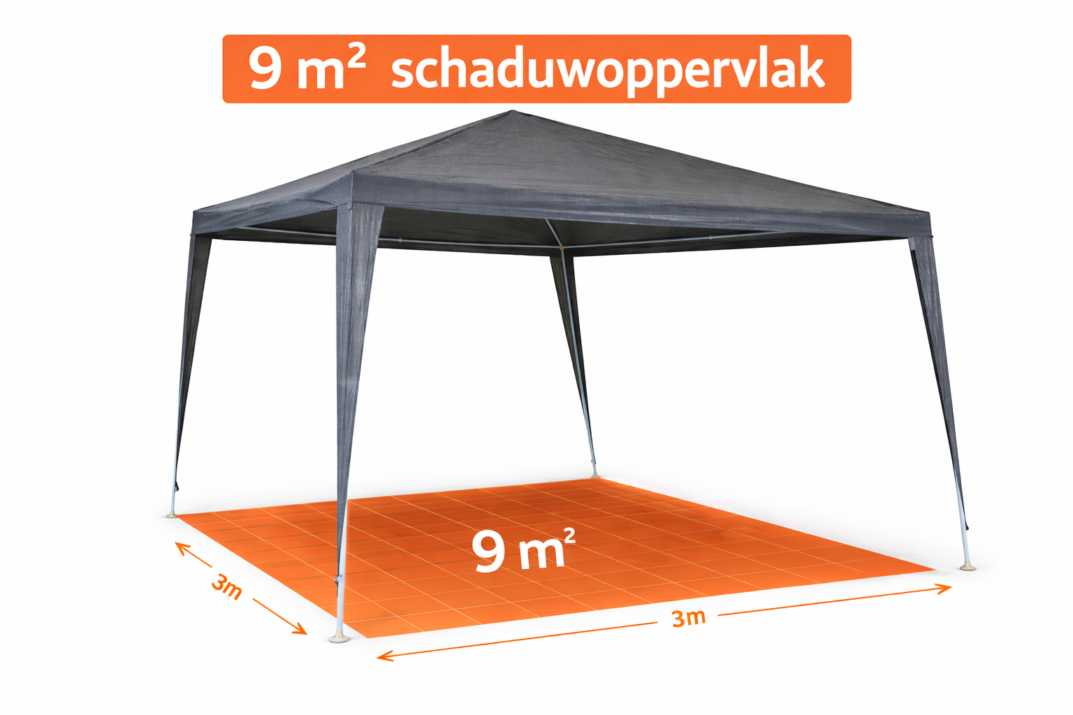 CUHOC Partytent 3x3 Meter Grijs - 300x300 cm Feesttent - Waterafstotend PE Dak - Tuintent Met Metalen Frame - Partytent Voor Tuin, BBQ en Feest