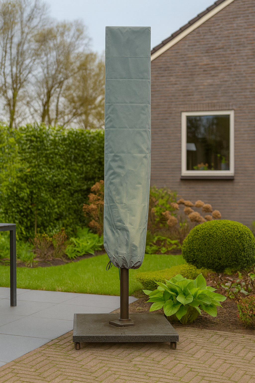 Stevige Parasolhoes voor Staande parasols Doordat Hoesjesweb de COVER UP HOC lijn verder heeft door ontwikkeld, om alles in en om de tuin/caravan te kunnen verhoezen, creëert u een eenheid in de tuin waar u jaar en dag met plezier tegen aan kijkt.