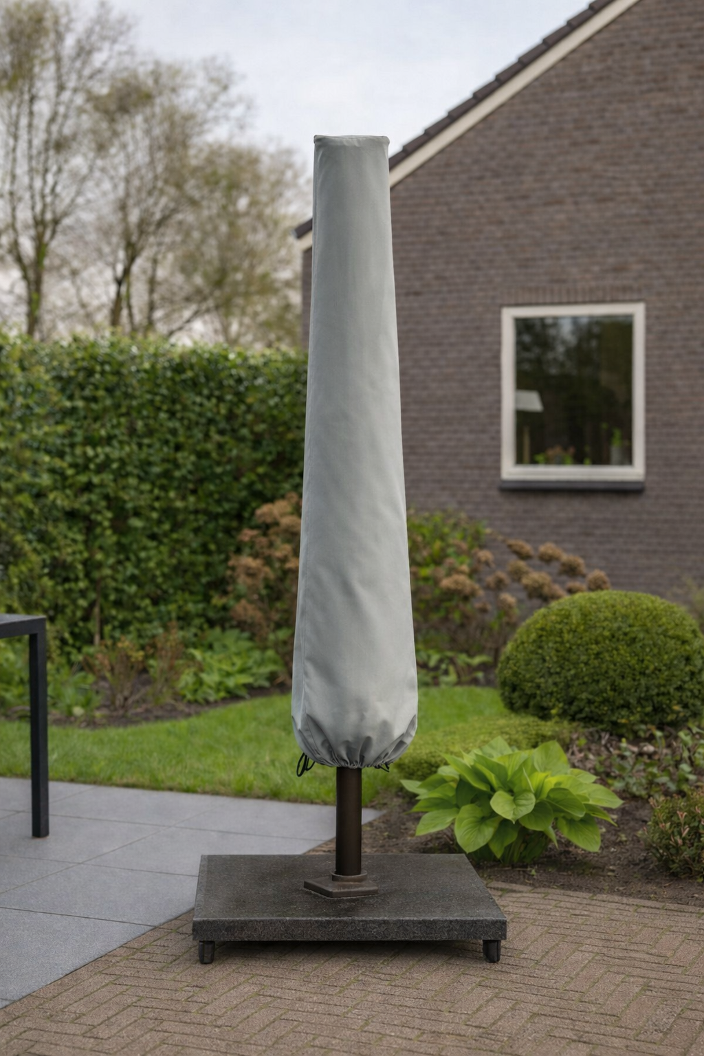 Let op! Een te grote parasolhoes hangt op de grond en een te kleine past niet. Kijk en meet! Neem de afmeting en neem zo een 3 cm speling. Kom je er niet uit, neem even contact met ons op wij helpen je graag verhoezen!
