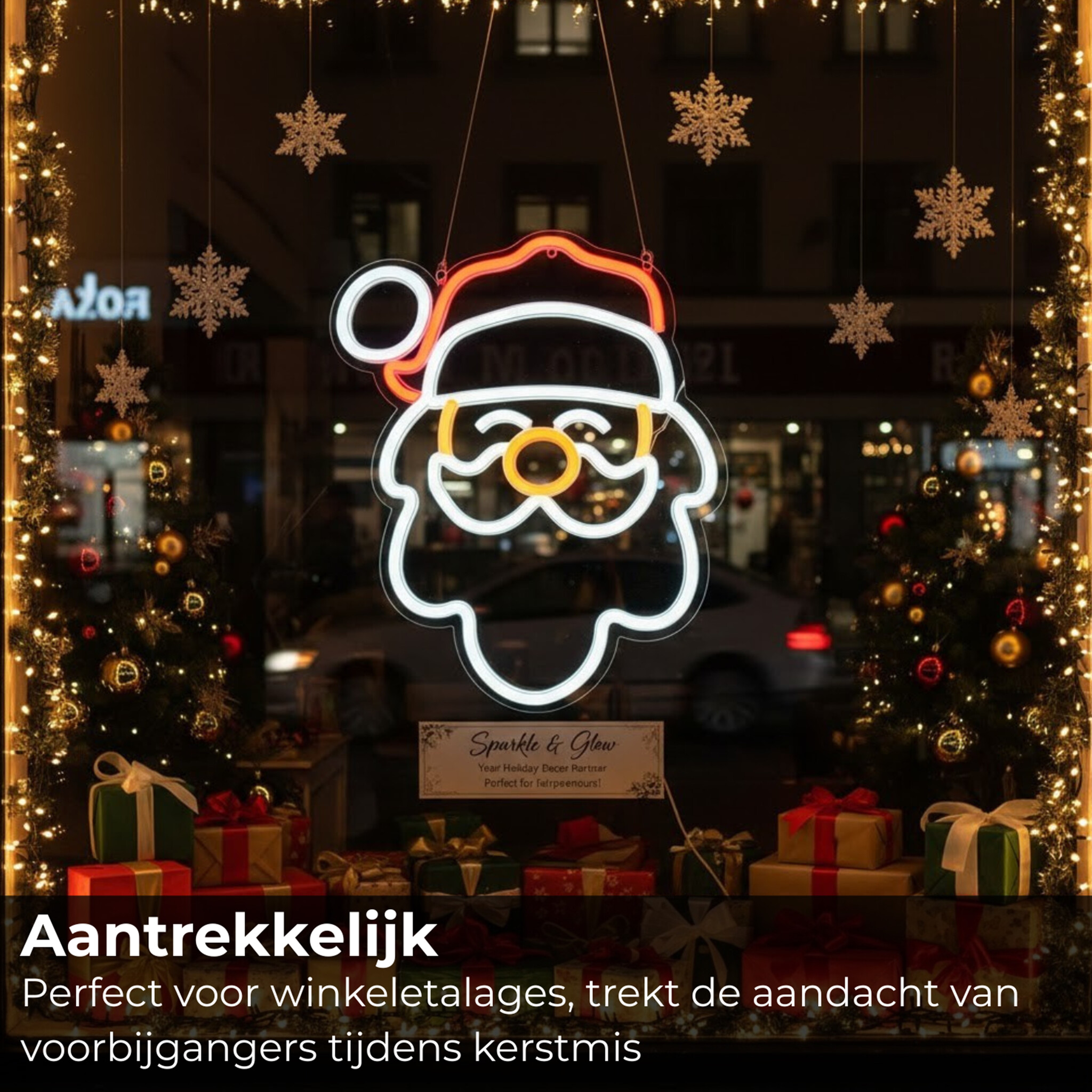 Beschikbaar in 2 kerstontwerpen (Santa-figuren 40x36 cm en 42x35 cm). Energiezuinig, veilig en ideaal als kerstdecoratie binnen.