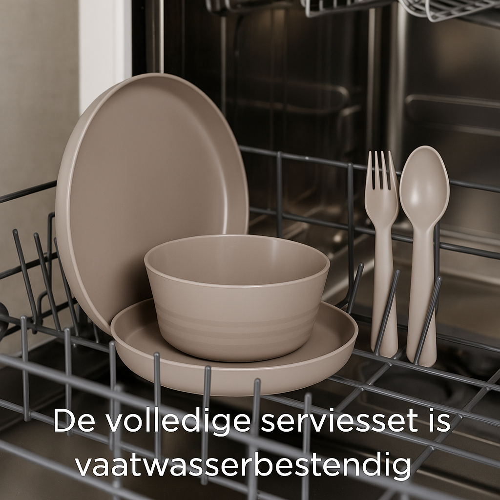 Deze complete 24-delig serviesset is perfect voor gezinnen, kinderen en dagelijks gebruik. De set bestaat uit 6 borden, 6 kommen, 6 vorken en 6 lepels, gemaakt van stevig BPA-vrij polypropyleen. Dit materiaal is veilig, lichtgewicht en onbreekbaar, waardoor het ideaal is voor thuis, camping, picknicks en vakantie.