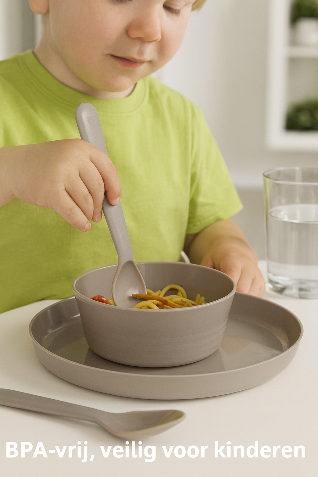 De zachte grijze kleur geeft elke tafel een frisse, moderne uitstraling. Alle onderdelen zijn stapelbaar en nemen weinig ruimte in. Dankzij het vaatwasserbestendige ontwerp is schoonmaken eenvoudig en snel. Een duurzame en praktische keuze voor elk huishouden dat gemak en veiligheid belangrijk vindt.