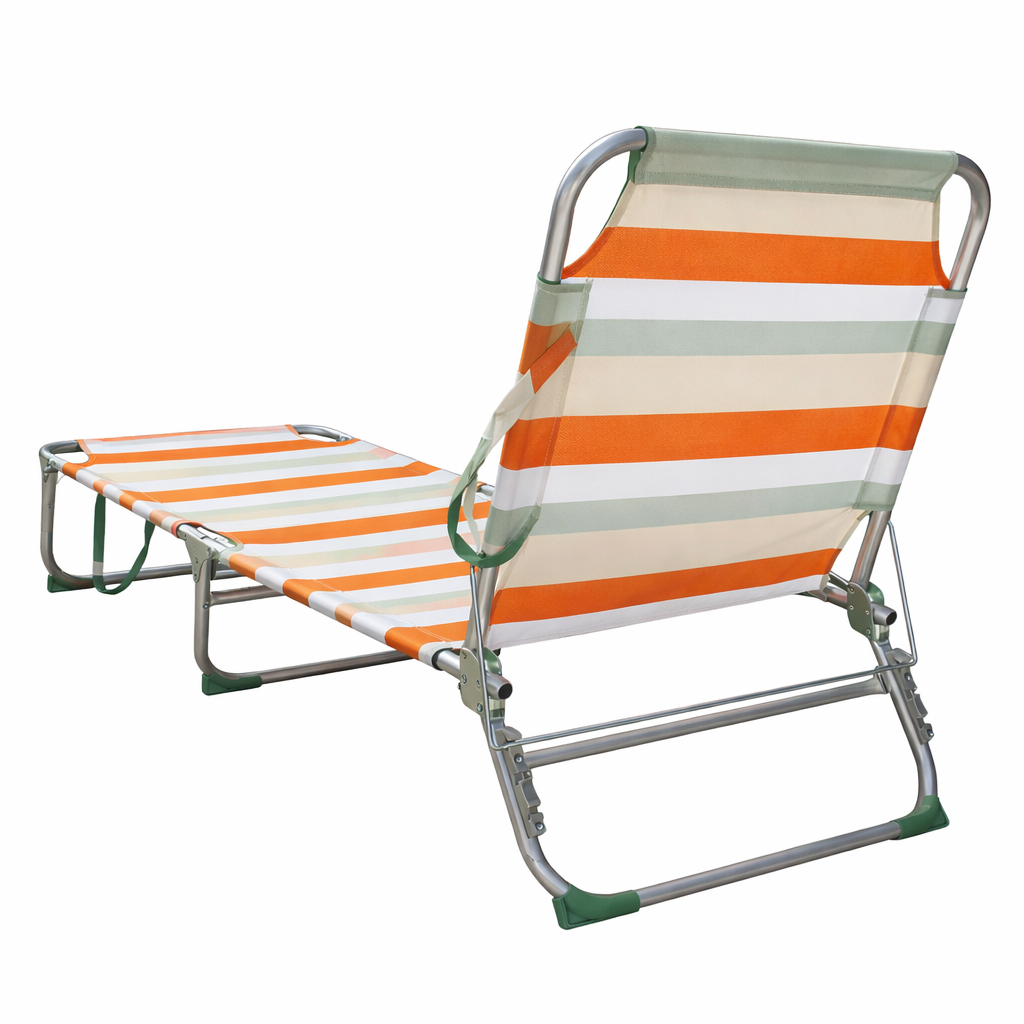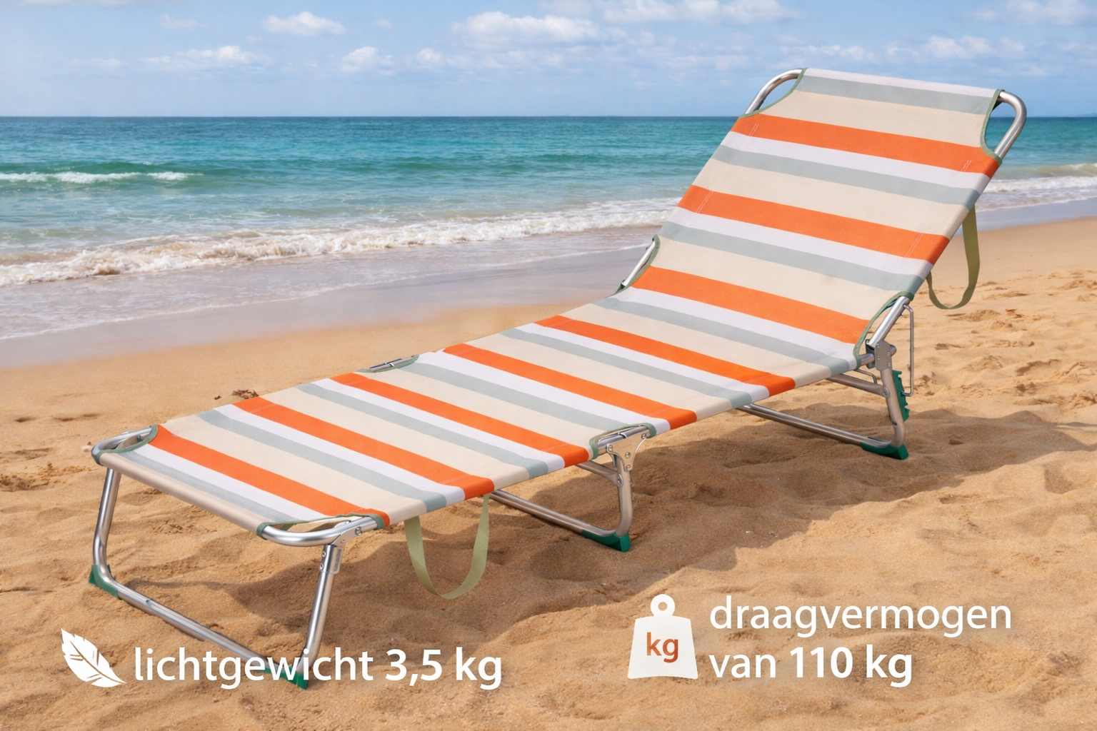 HEM 2x Strandligbed Opvouwbaar – Aluminium Ligstoel – Verstelbare Rugleuning 3 Standen – Lichtgewicht Outdoor Strandbed – Streeppatroon Oranje/Ecru/Grijs