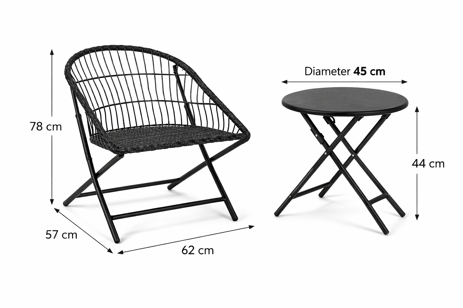 - Tafel: Ø45 x 44 cm