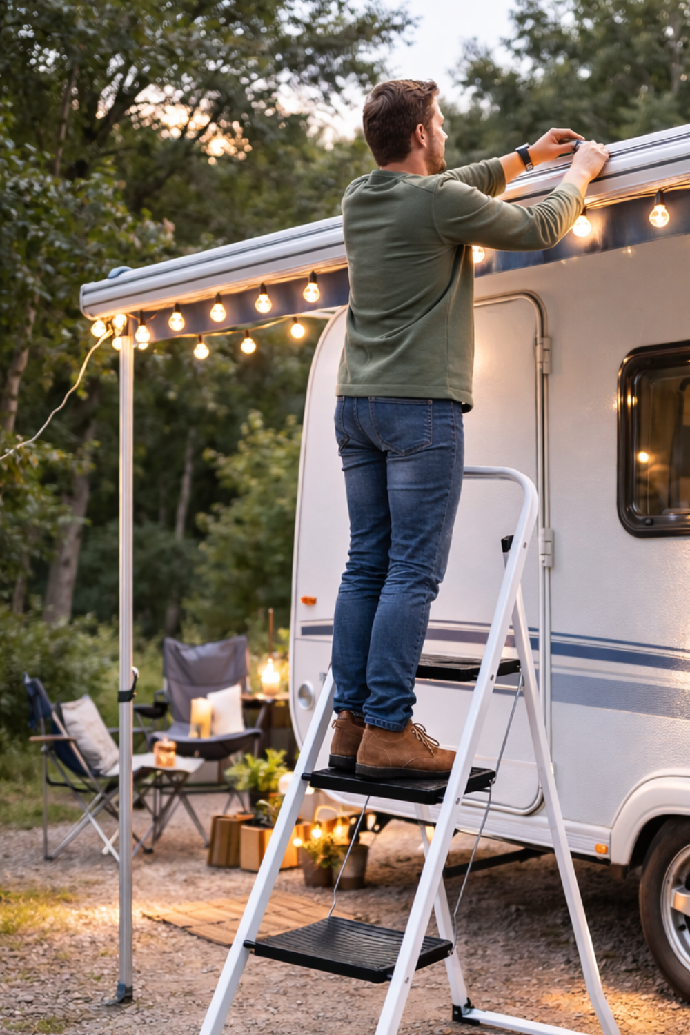 Met deze HEM Campingtrap met 3 treden bereik je moeiteloos je voortent, caravan, camper of dakkoffer – zonder wiebelende stoelen of onveilige oplossingen.