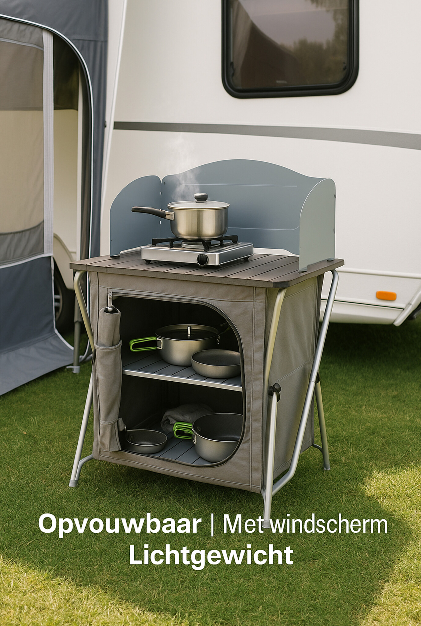 HEM Campingkeuken – Opvouwbare Campingkast met Werkblad en Windscherm – Grijs
