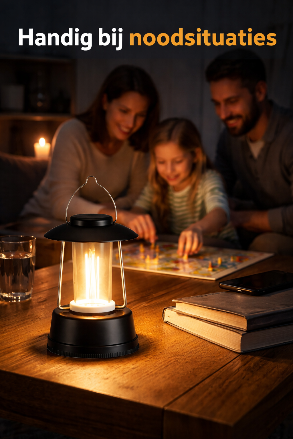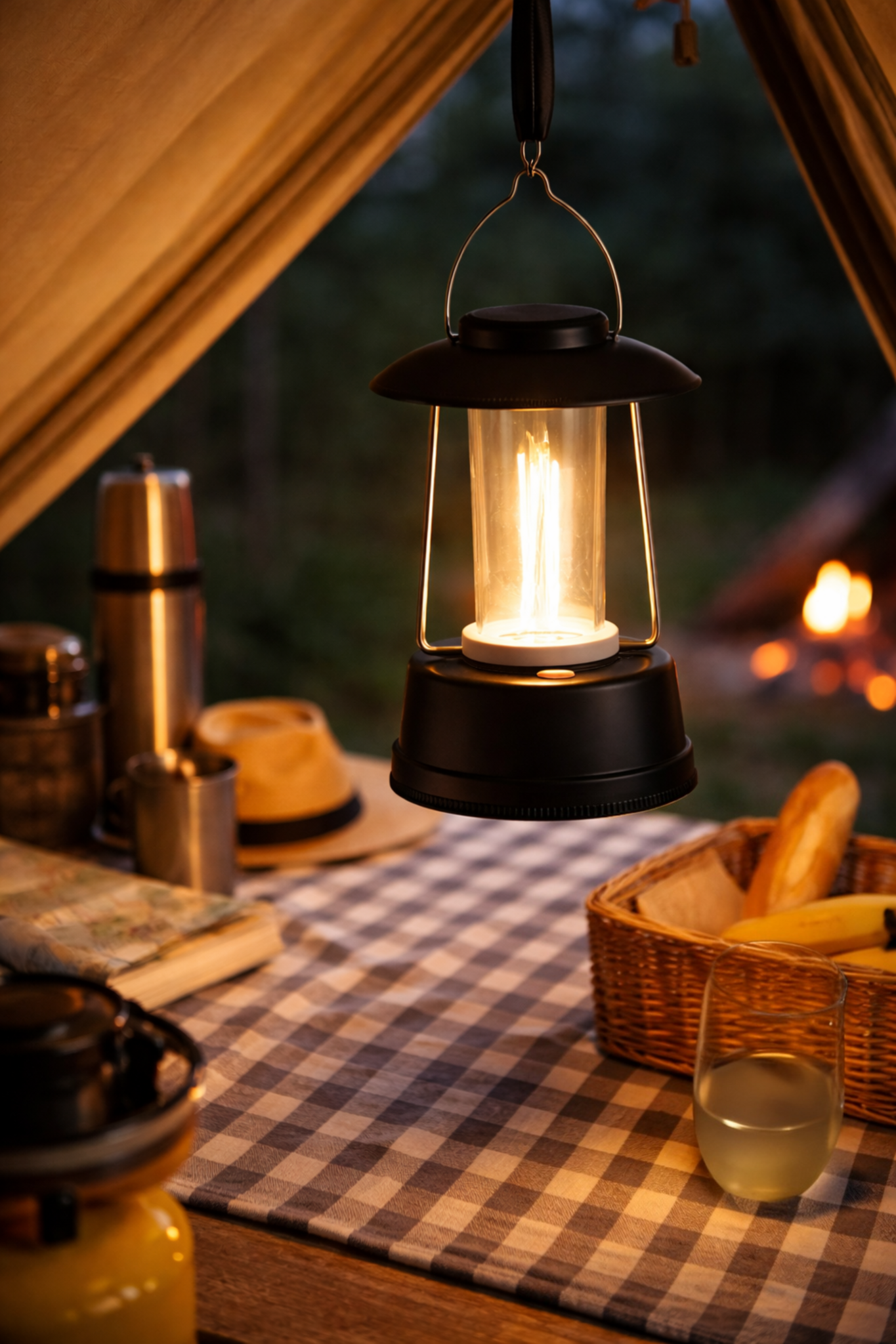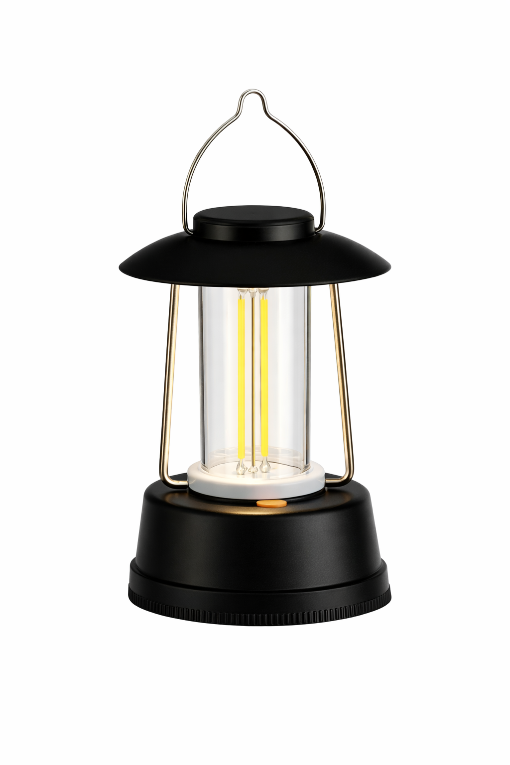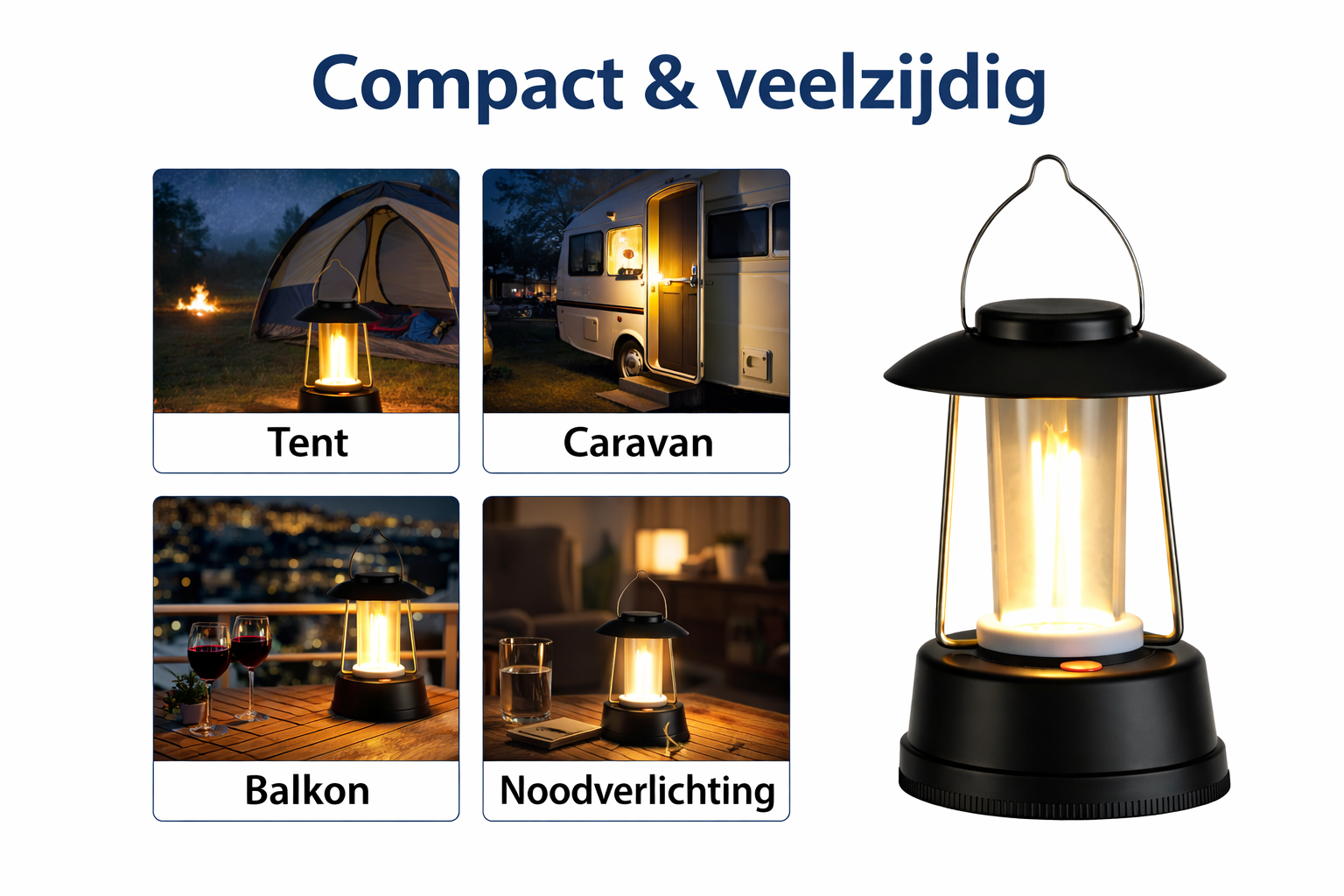 De campinglamp werkt op 3 AAA-batterijen (niet inbegrepen).