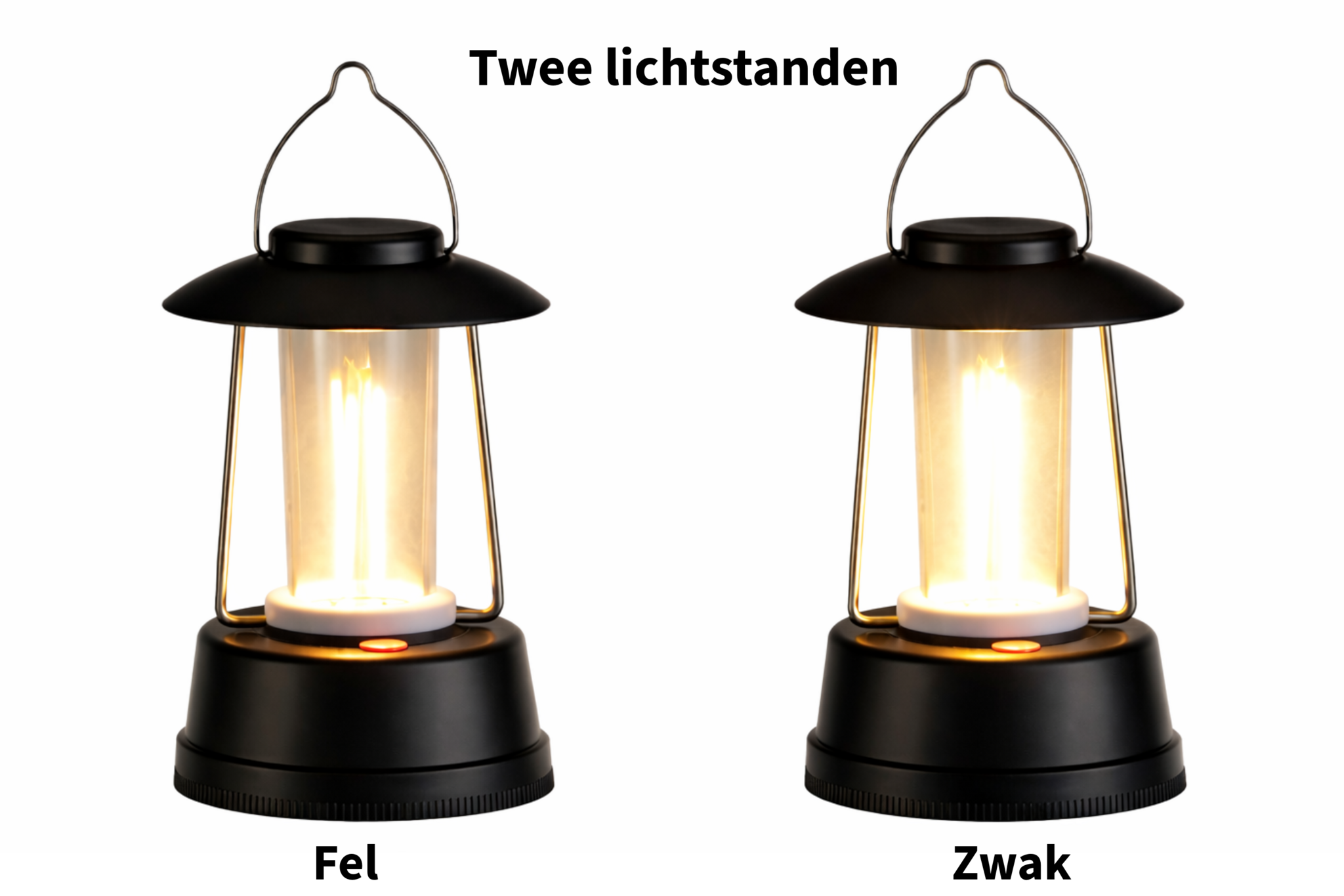 De lamp beschikt over 2 lichtstanden (fel en zwak). Zo kies je zelf tussen functioneel licht of een warmere, sfeervolle uitstraling.