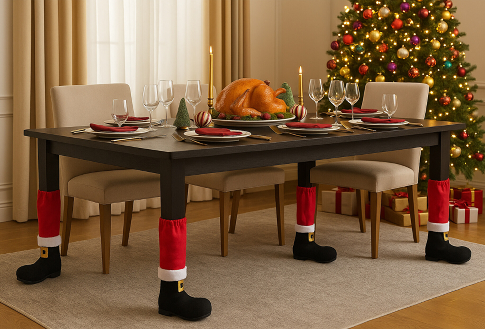 “De leukste kerst tafelpoot hoezen zijn dé kerstdecoratie voor je tafel; met deze Santa laars hoes voeg je direct sfeervolle kerst tafeldecoratie en kerstversiering toe aan je woonkamer, de perfecte kerst sfeermaker.”