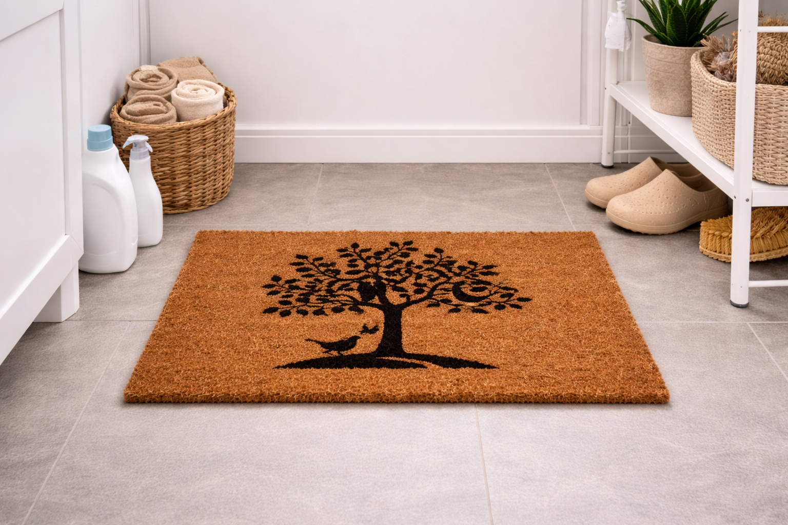 Breng sfeer én functionaliteit samen bij uw entree met deze kokos deurmat van 60x40 cm. Dankzij de stevige natuurlijke kokosvezels worden vuil en zand effectief van schoenen geschraapt, zodat uw hal schoon blijft.