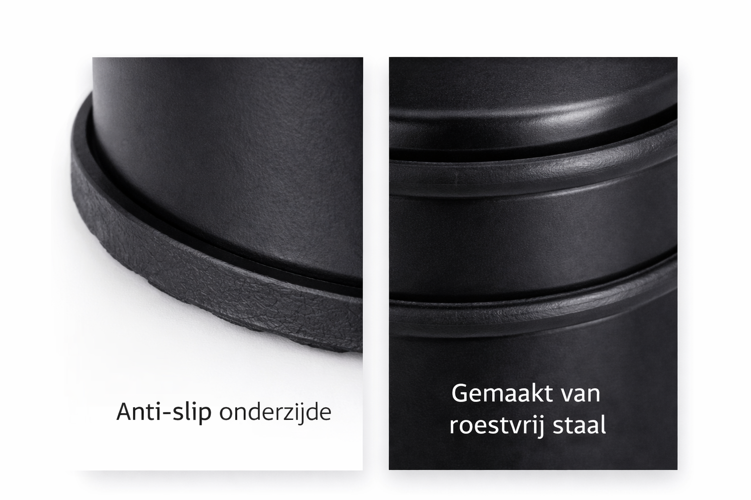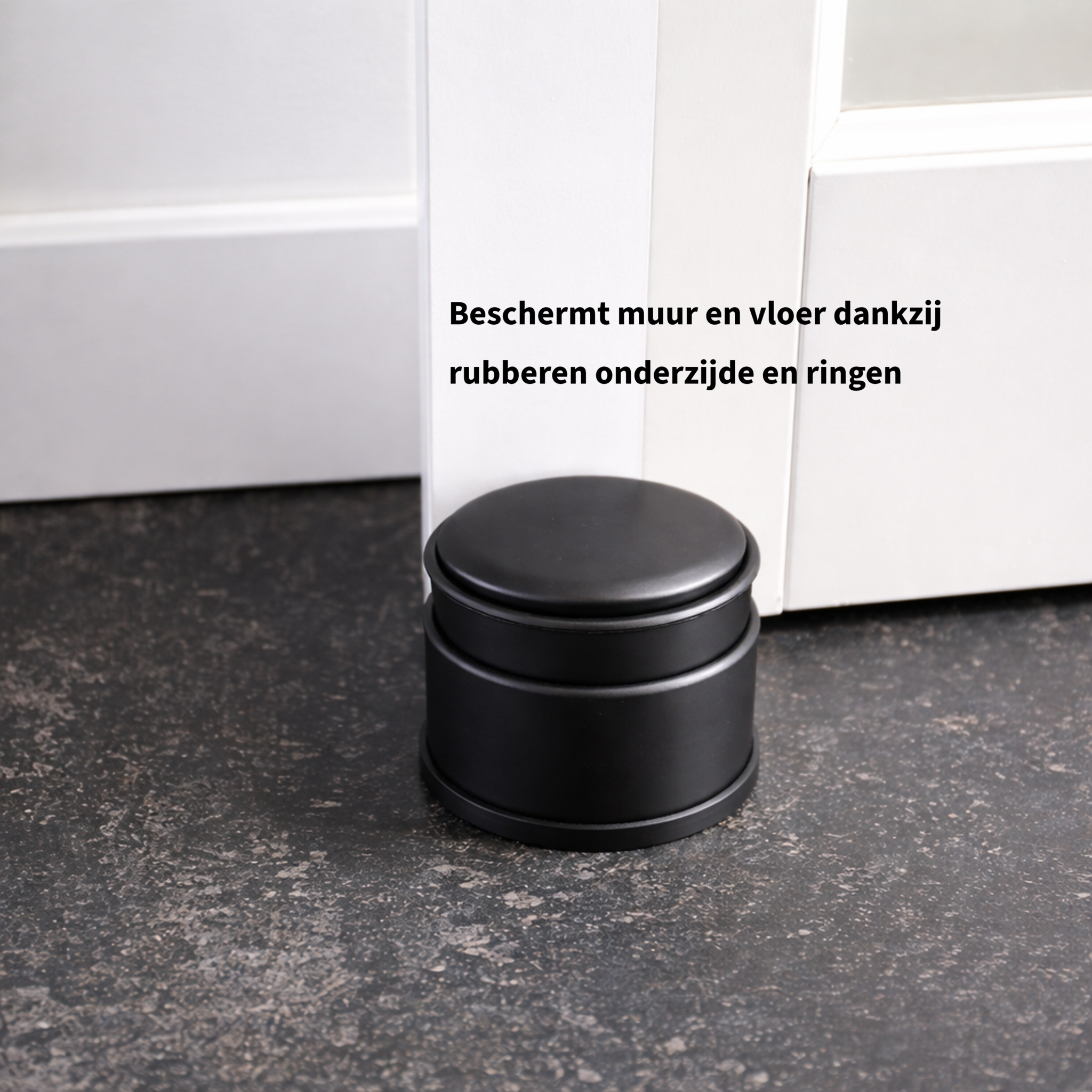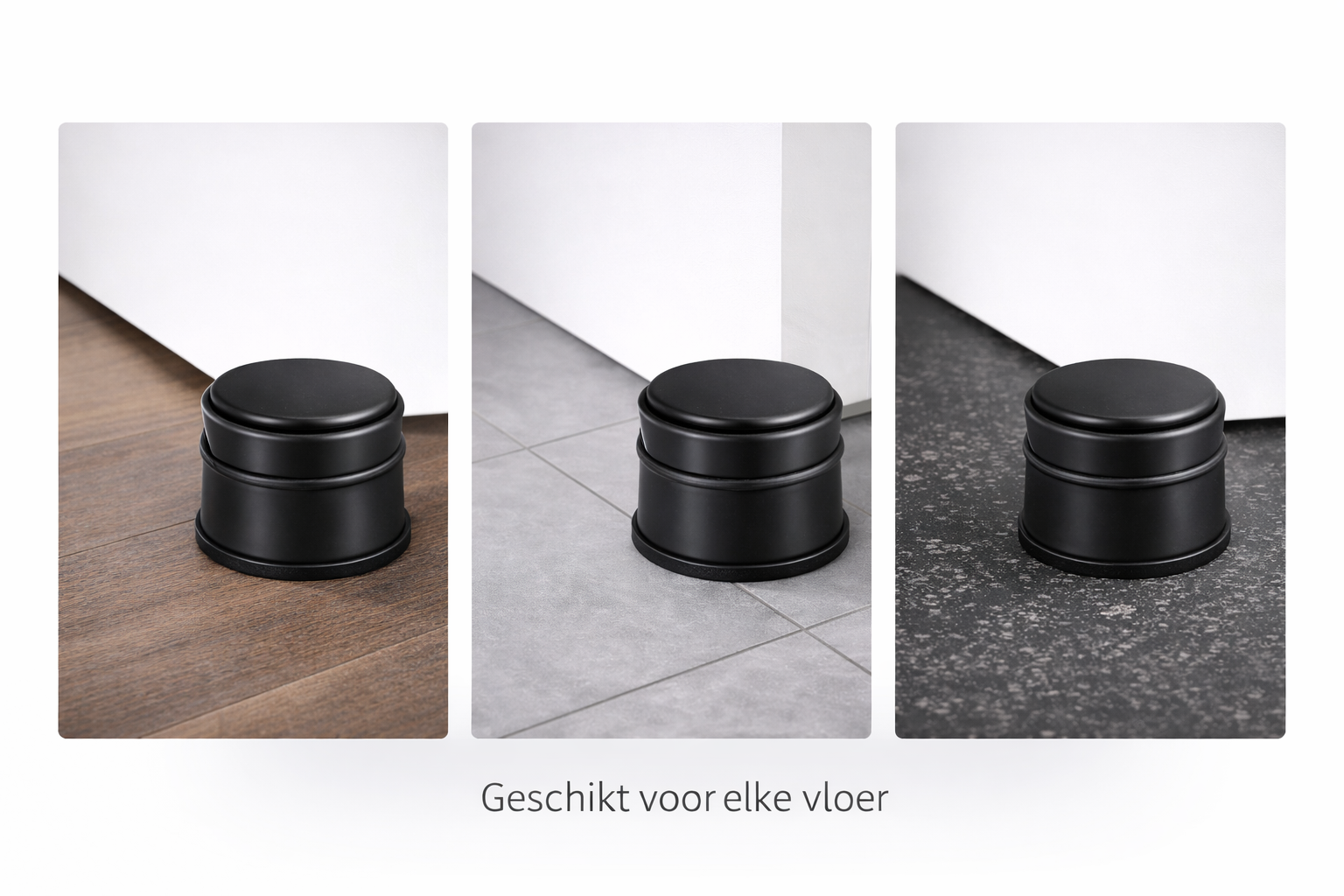 De deurstoppers zijn vervaardigd uit roestvrij staal met een mat zwarte afwerking, wat zorgt voor een moderne en tijdloze uitstraling die in vrijwel elk interieur past. De antislip onderzijde voorkomt verschuiven en beschermt de vloer, muur en deur tegen beschadigingen.