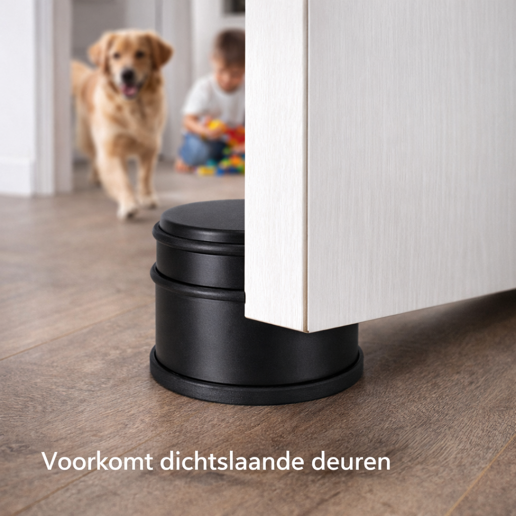 Deze set van vier zware deurstoppers van elk 1 kg is ideaal voor het veilig en eenvoudig openhouden van meerdere deuren, zonder boren of montage. Dankzij het hoge gewicht blijven de deurstoppers stabiel liggen, zelfs bij zware deuren of tocht.