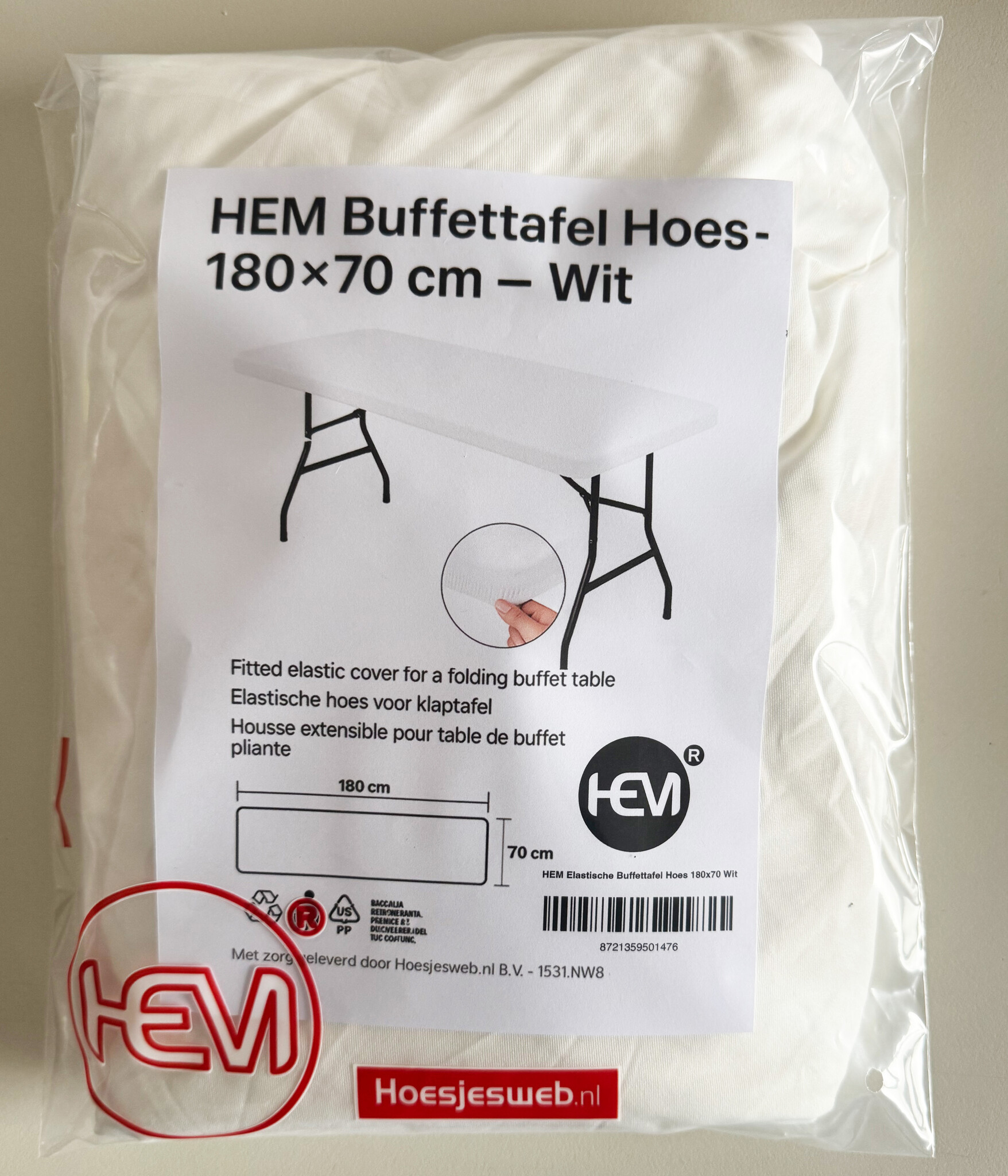 De HEM Elastische Buffettafel Hoes 180x70 is een strak passend stretch polyester tafelkleed dat jouw buffettafel direct een luxe, professionele en schone uitstraling geeft. Dankzij het rekbare materiaal sluit de hoes perfect om de tafel, blijft hij netjes op zijn plek zitten en is hij ideaal voor feestjes, horeca, catering, evenementen, tuinfeesten, camping en buffetten.