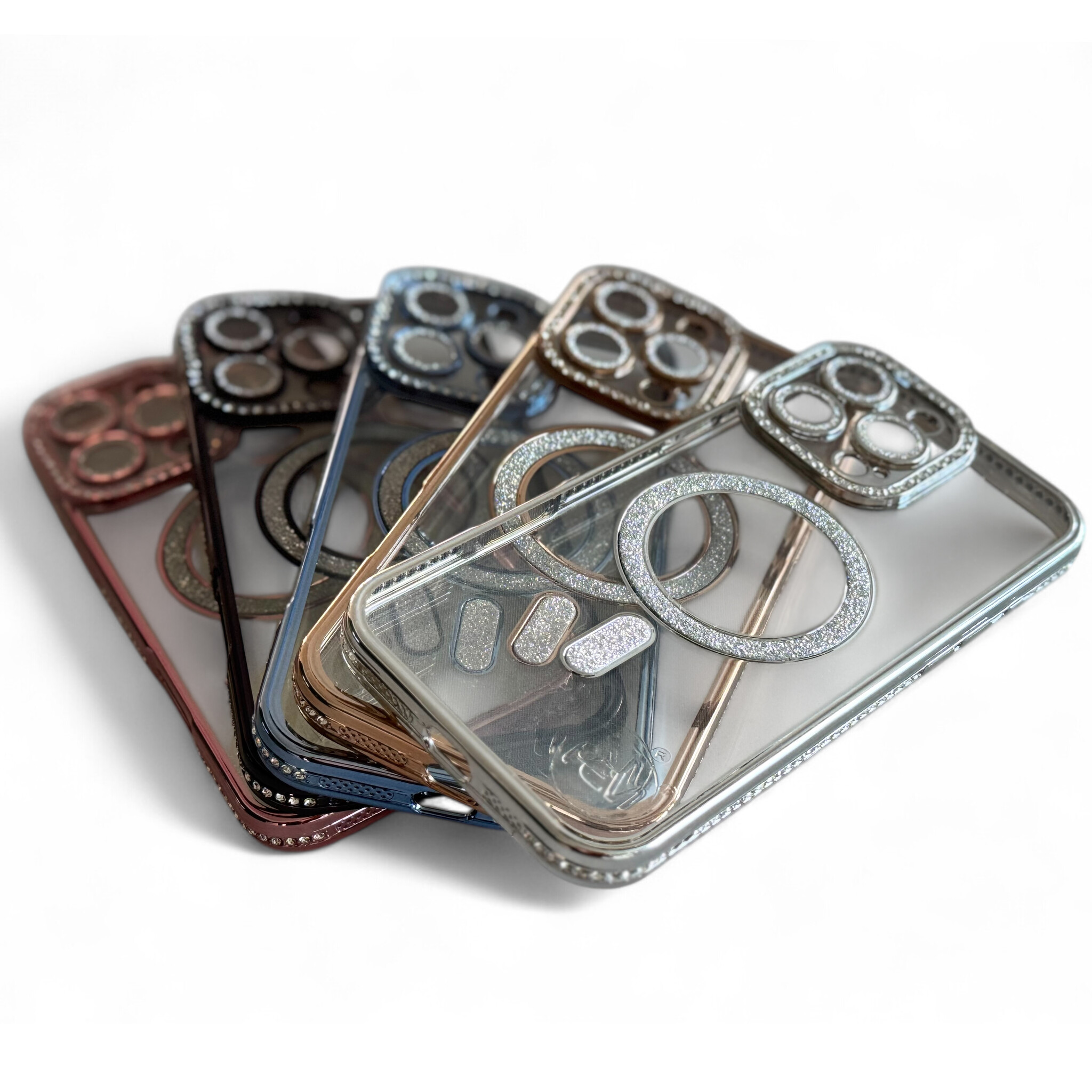 •Zilver Glitter Design: Transparant hoesje met subtiele, sprankelende glitter details in een elegante roze tint, voor een chique uitstraling.