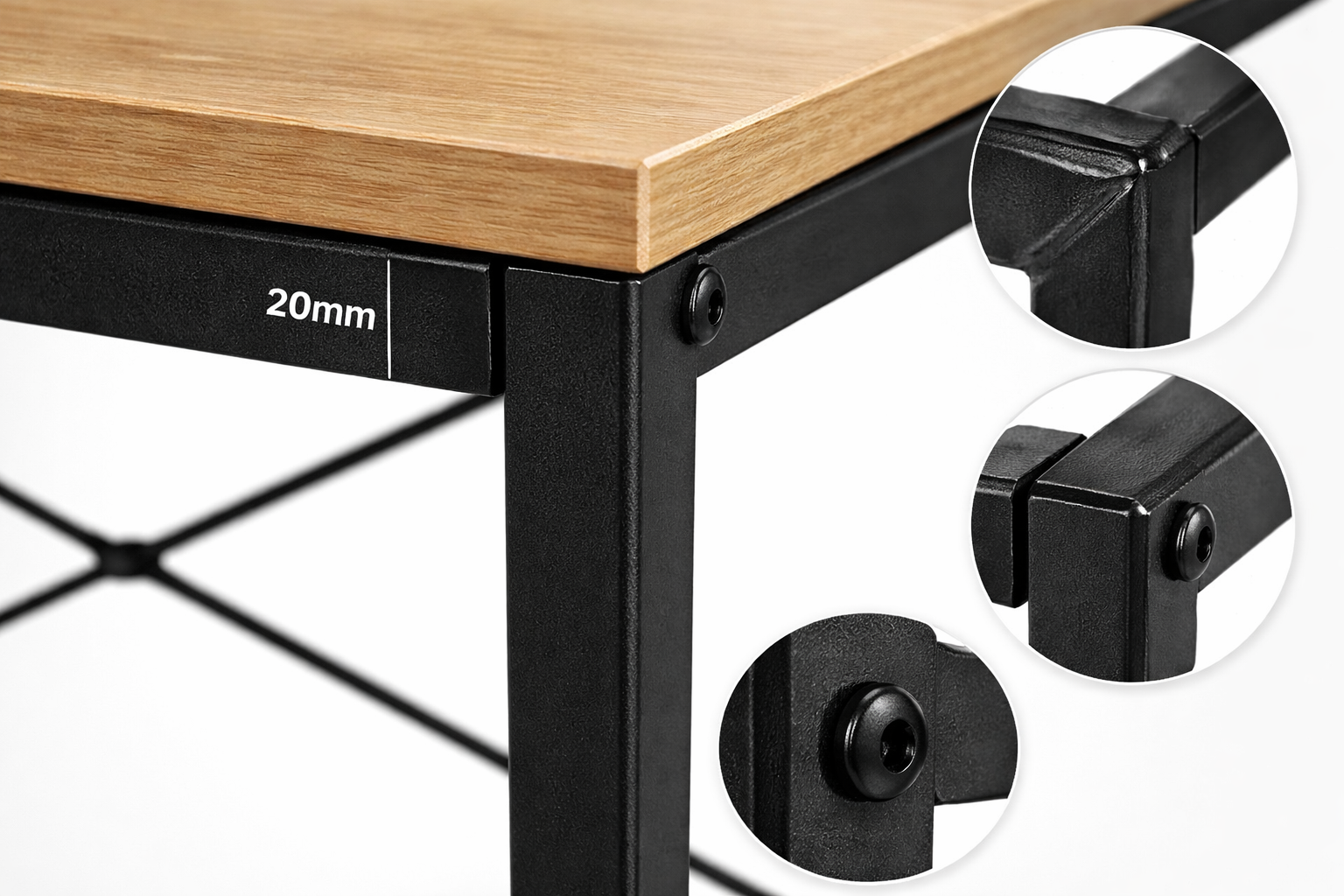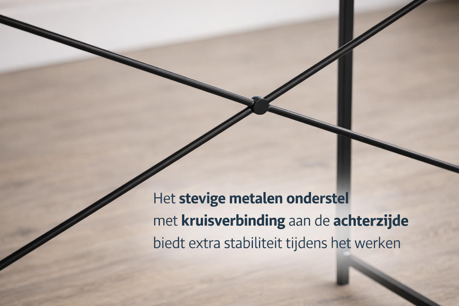 De constructie is ontworpen voor zelfmontage, waardoor het bureau compact verpakt wordt geleverd en eenvoudig thuis te monteren is met de meegeleverde onderdelen.
