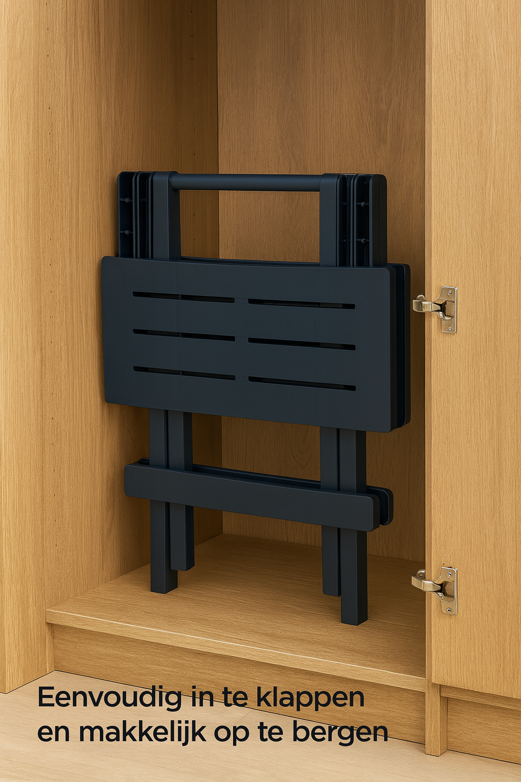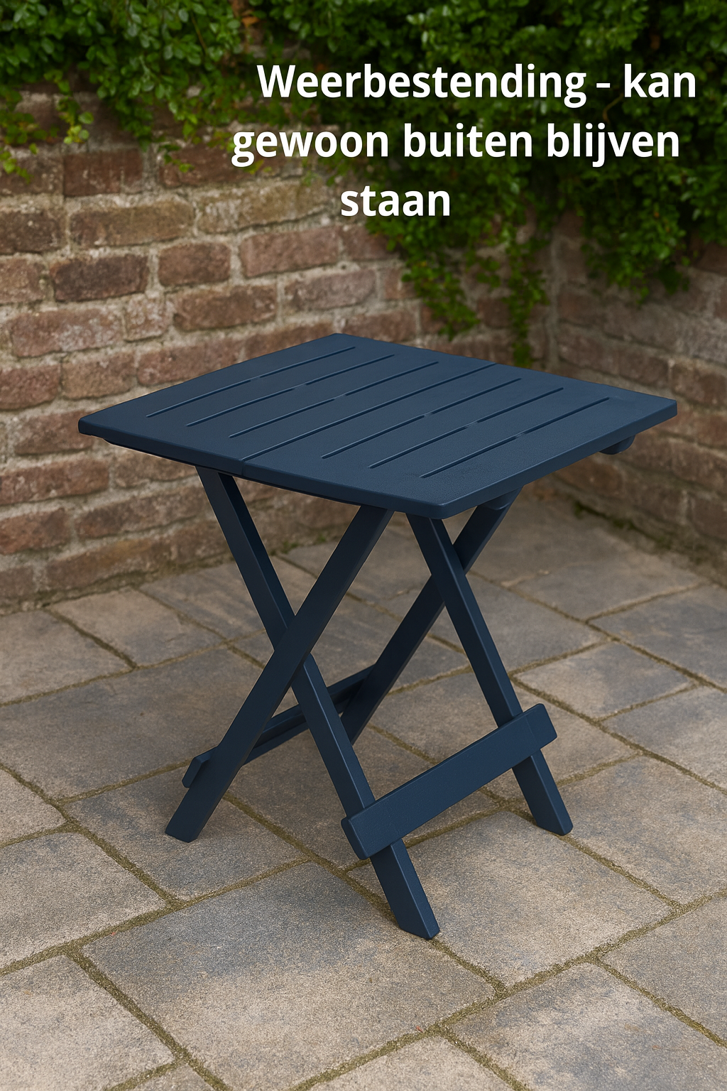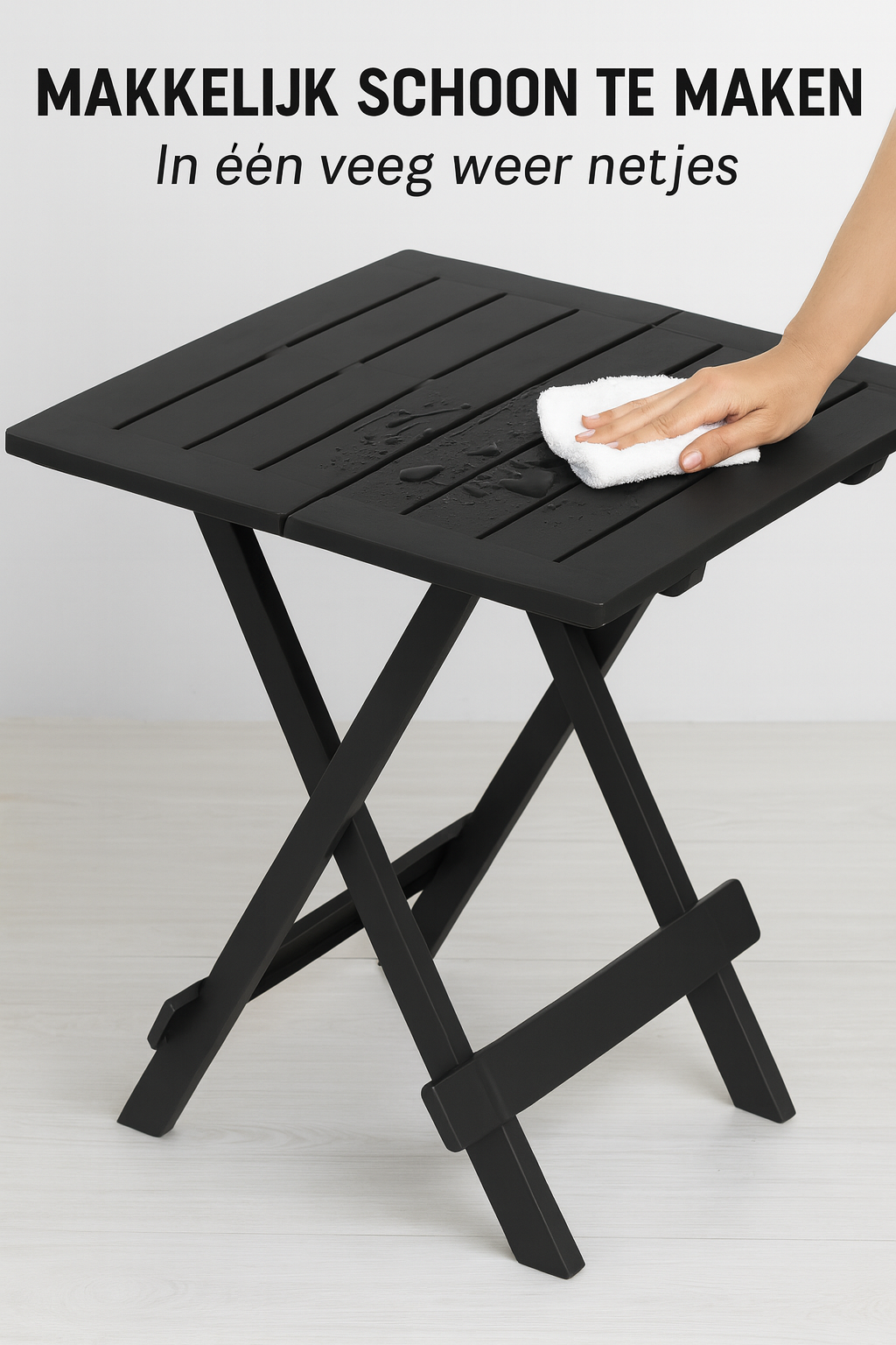 Gemaakt van hoogwaardig kunststof, is de tafel weerbestendig, onderhoudsarm en eenvoudig schoon te maken. Het stevige frame zorgt voor stabiliteit, zodat je veilig je spullen kunt neerzetten. Dankzij het moderne, strakke design past deze tafel in elke omgeving.