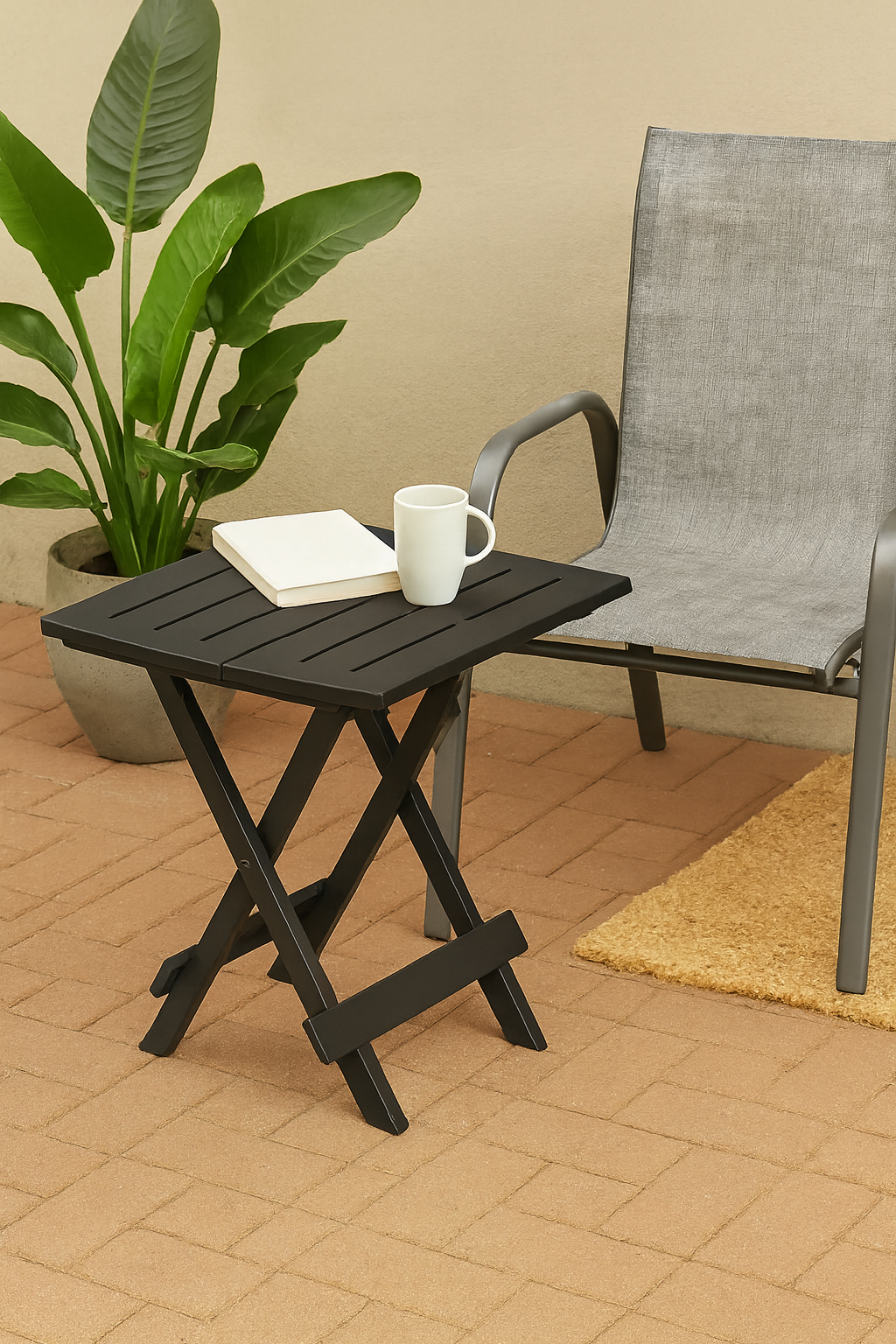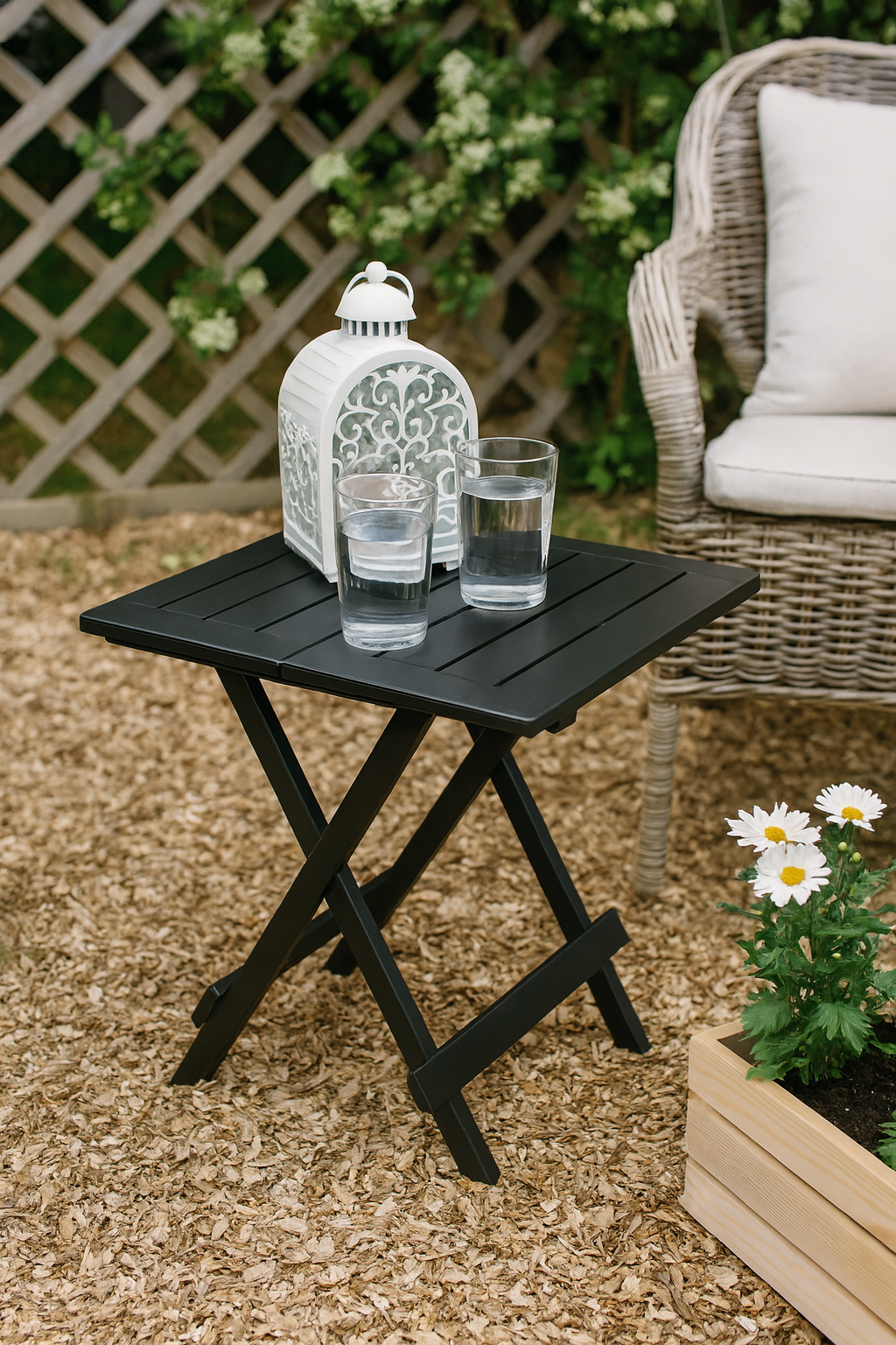 Deze inklapbare tafel van 43×45 cm in Zwart is de perfecte oplossing voor wie een compacte, veelzijdige en stevige tafel zoekt. Gebruik hem als klaptafel, campingtafel of vouwtafel voor onderweg, in de tuin of op het balkon. Het lichte en opvouwbare ontwerp maakt transport en opslag eenvoudig.