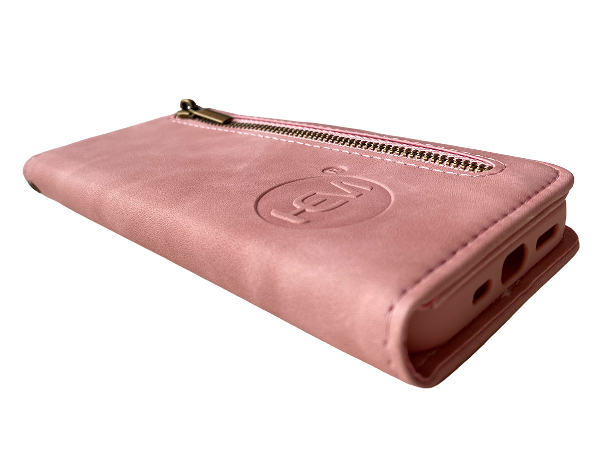 HEM - iPhone 14 Pro hoesje Silky Rose - iPhone 14 Pro roze hoesje met rits - iPhone 14 Pro pasjeshoesje in bookcover