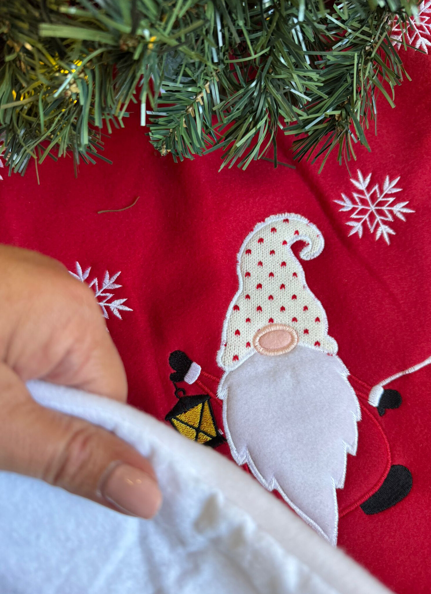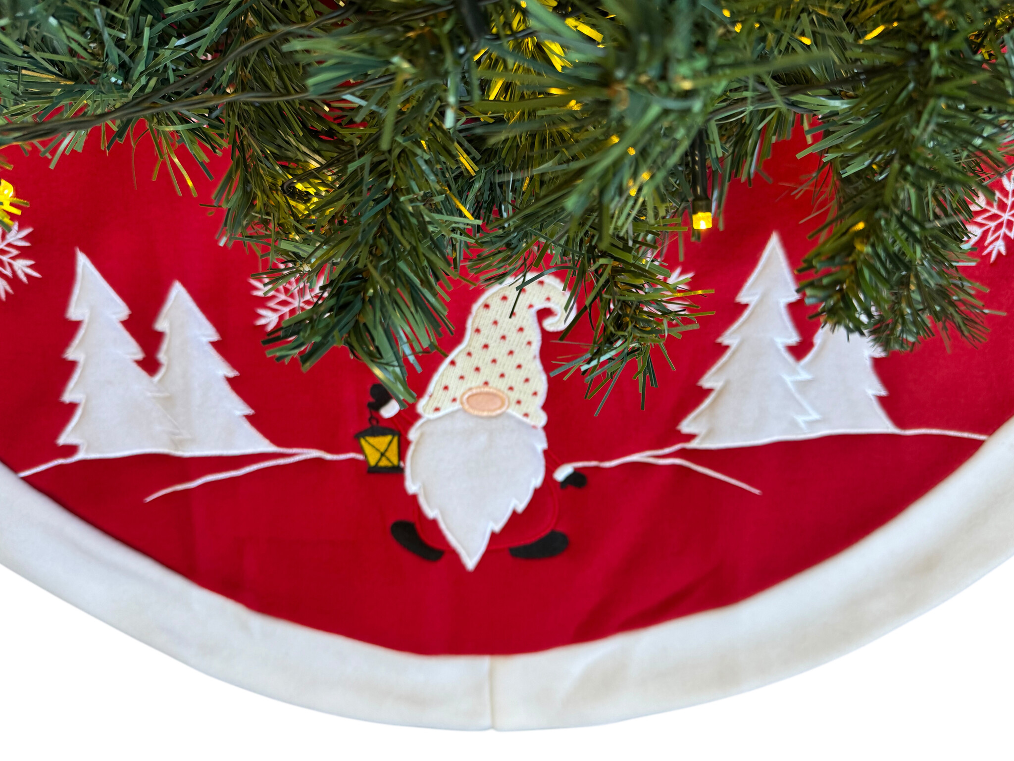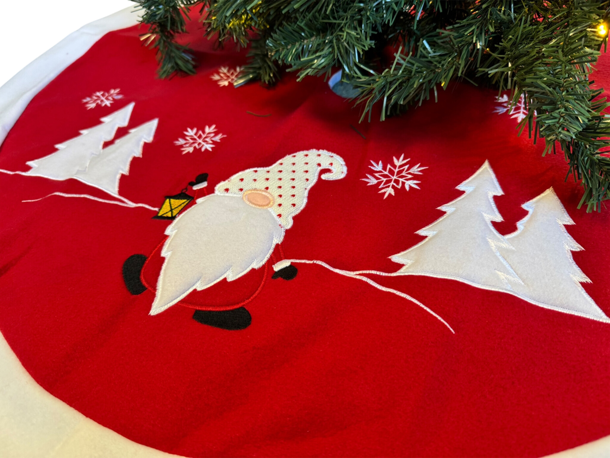 Geef je woonkamer, hal of kantoor een feestelijke uitstraling en maak je kerstdecoratie compleet met dit kerstboom kleed. Dankzij de vrolijke gnoom print is deze boomrok een echte eyecatcher tijdens de feestdagen. Perfect te combineren met kerstverlichting, ornamenten en andere kerstdecoratie voor een warme en uitnodigende sfeer.