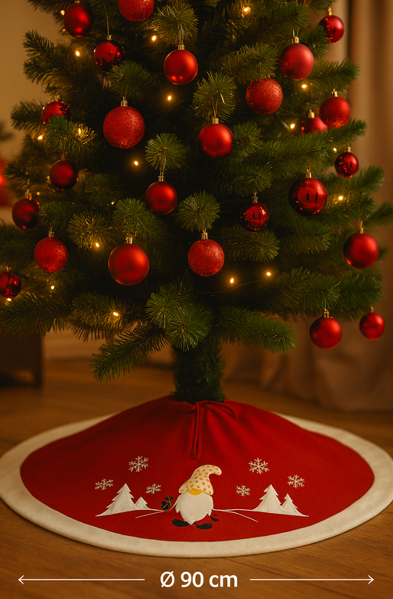 • HEM Kerstboom Rok – Ø 90 cm boomkleed in rood/wit
