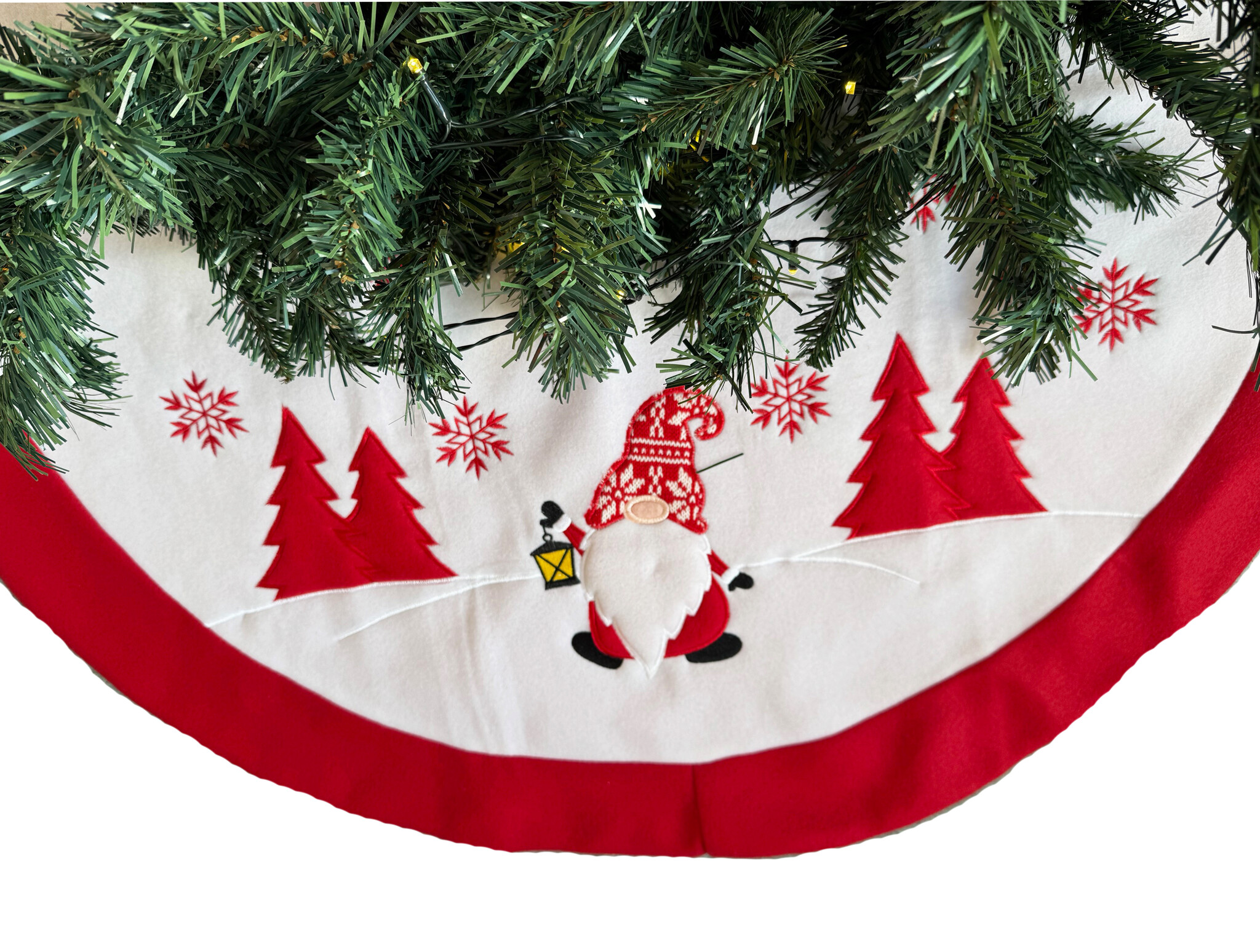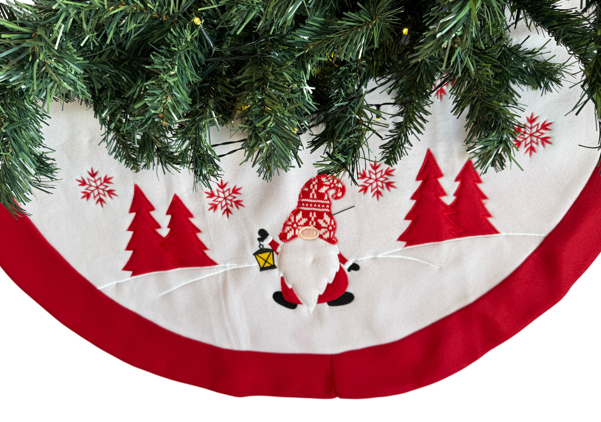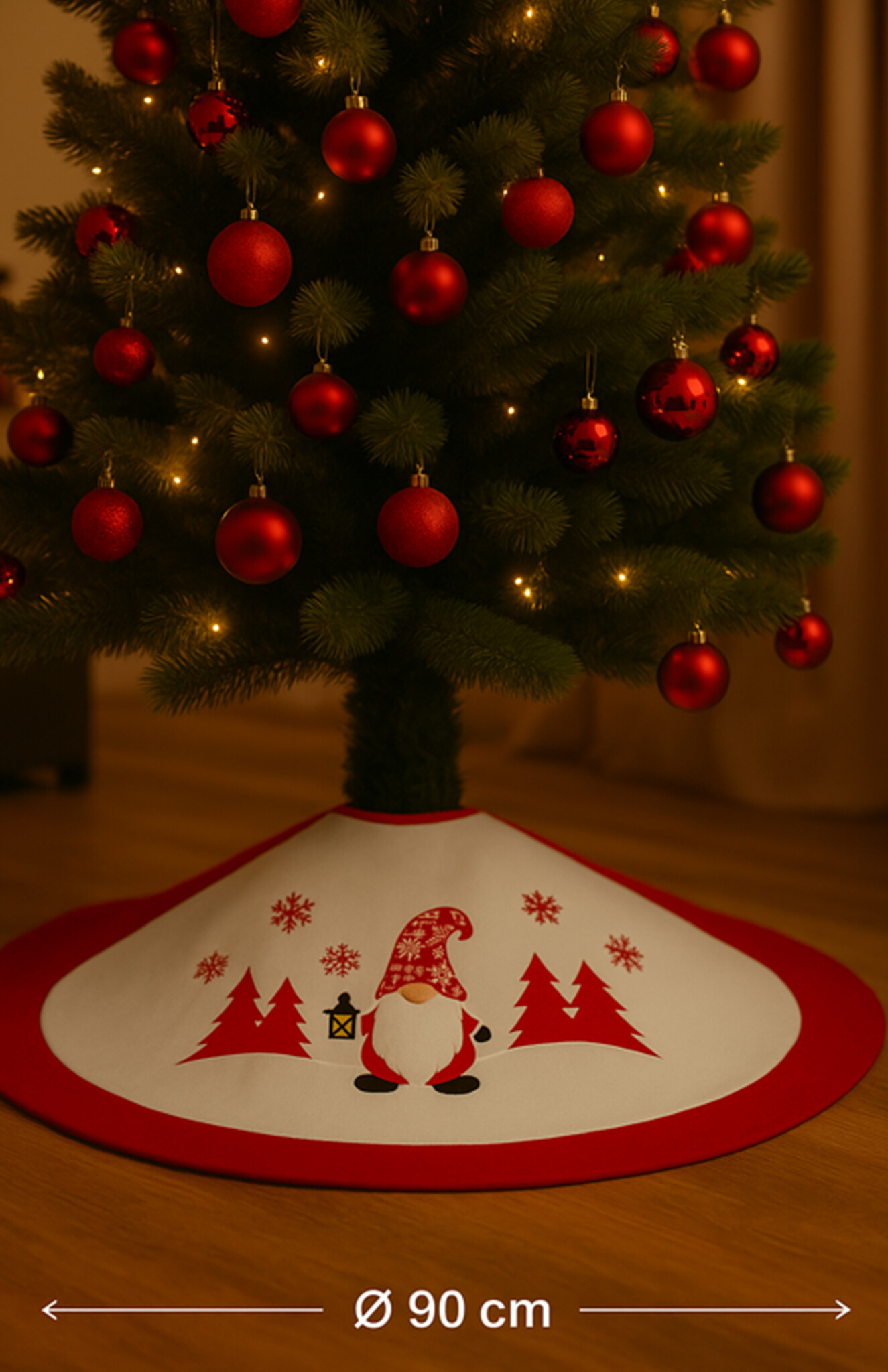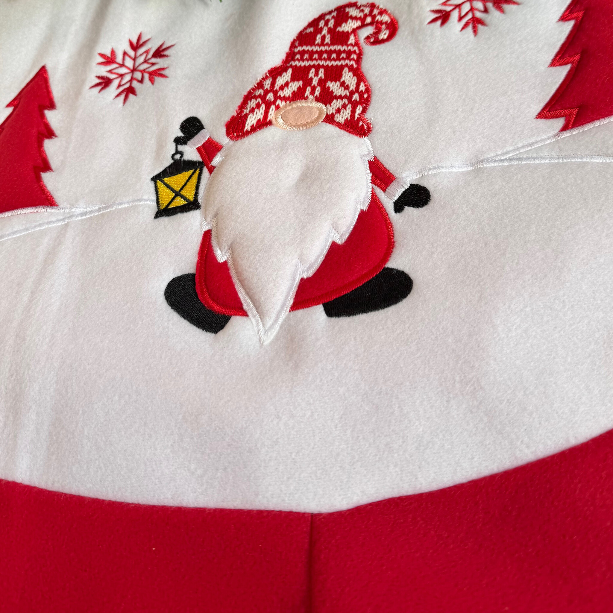 Geef je woonkamer, hal of kantoor een feestelijke uitstraling en maak je kerstdecoratie compleet met dit kerstboom kleed. Dankzij de vrolijke gnoom print is deze boomrok een echte eyecatcher tijdens de feestdagen. Perfect te combineren met kerstverlichting, ornamenten en andere kerstdecoratie voor een warme en uitnodigende sfeer.