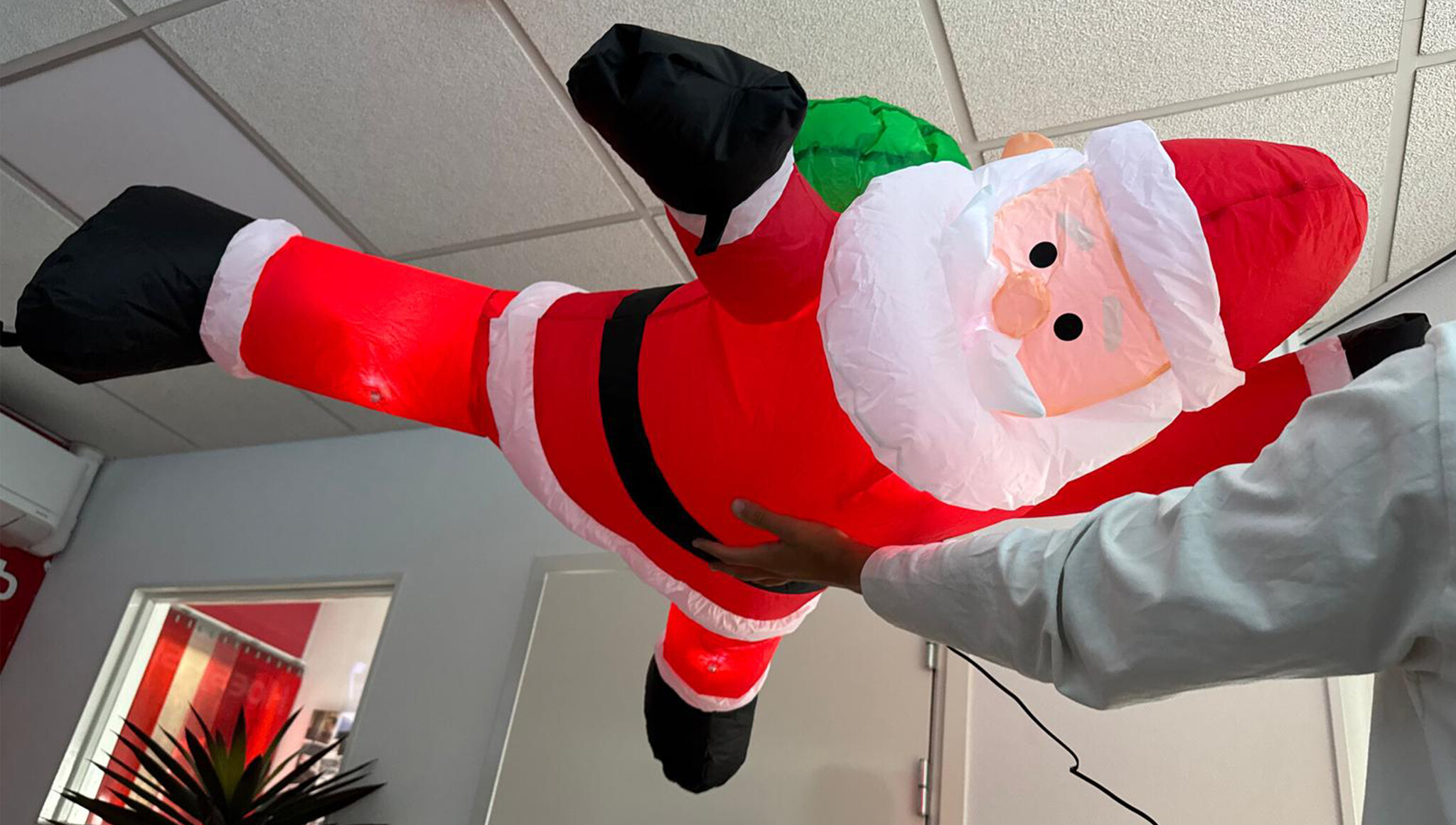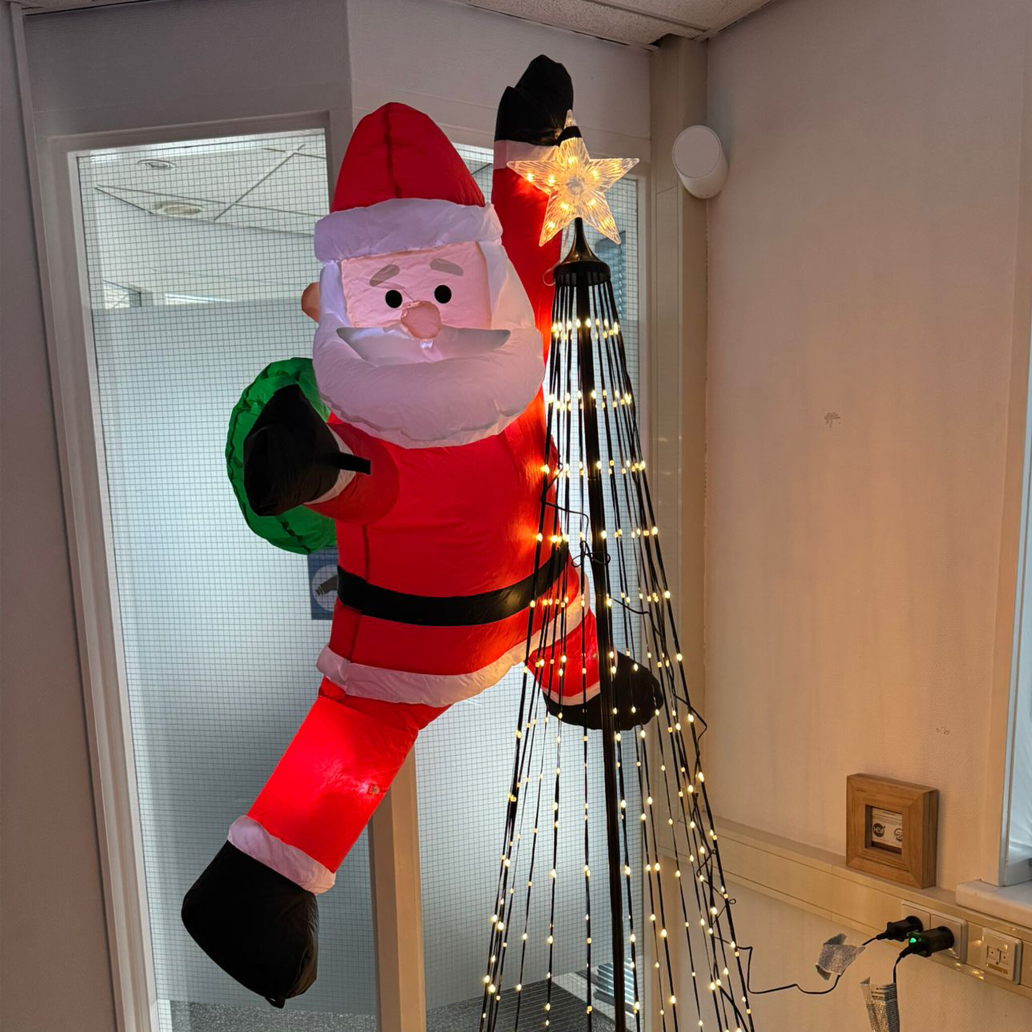 Deze opblaasbare kerstman van 120 cm brengt direct kerstsfeer tijdens de feestdagen. Dankzij de ingebouwde LED verlichting valt hij zowel overdag als ’s avonds goed op. Het duurzame polyester met waterafstotende coating maakt hem geschikt voor zowel binnen als buiten. Met de blower en adapter staat de kerstman in enkele minuten stevig rechtop. Inclusief 3 bevestigingskoorden en een 2 meter lange aansluitkabel. Perfecte kerstdecoratie voor tuin, woonkamer, balkon of entree.