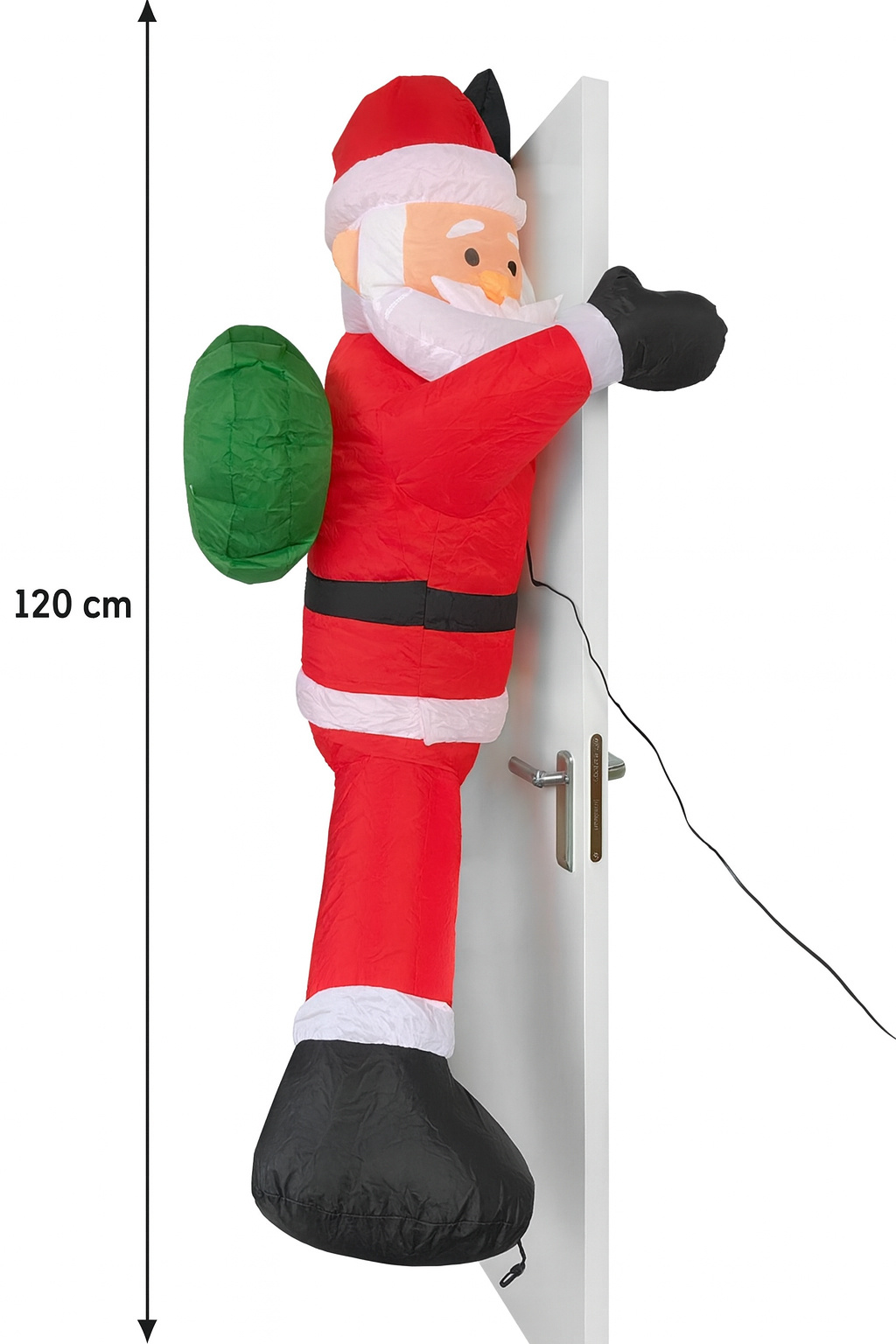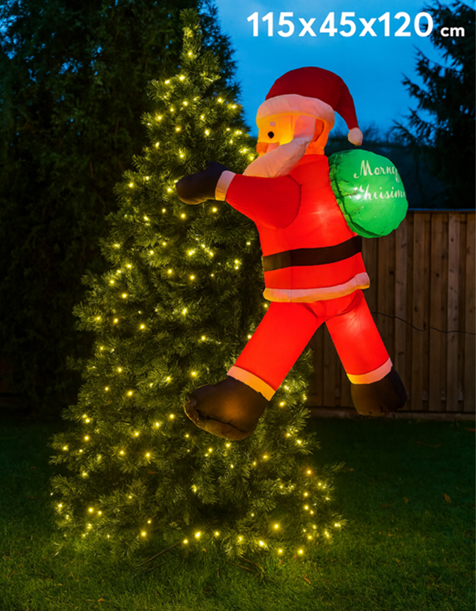 Opblaasbare kerstman van 120 cm met LED verlichting. Gemaakt van waterdicht polyester, geschikt voor binnen en buiten. Inclusief blower, adapter, bevestigingskoorden en 2 meter kabel.