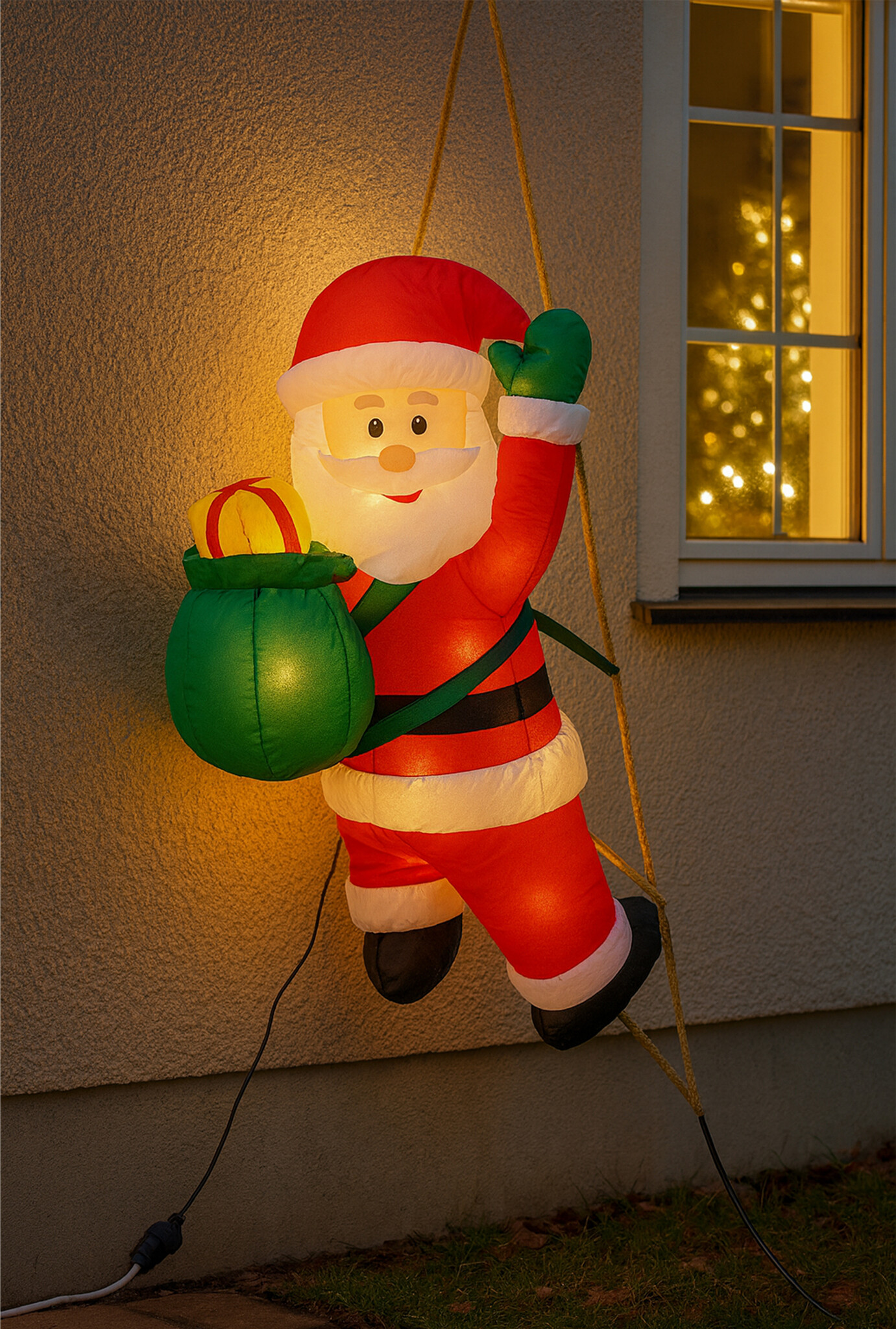 Breng direct kerstsfeer in huis of tuin met deze vrolijke opblaasbare kerstman van 122 cm. De kerstman klimt op een ladder en is voorzien van heldere LED-verlichting voor een warme gloed in de avond.