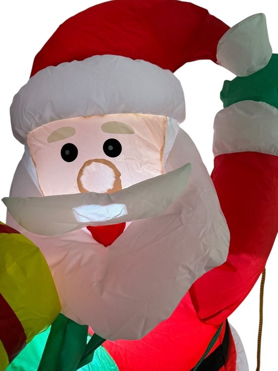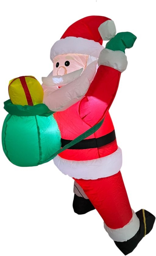Breng direct kerstsfeer in huis of tuin met deze vrolijke opblaasbare kerstman van 122 cm. De kerstman klimt op een ladder en is voorzien van heldere LED-verlichting voor een warme gloed in de avond.