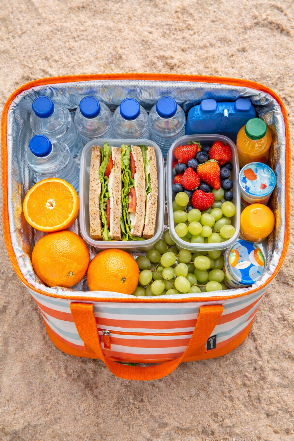 Aan de binnenzijde beschikt de koeltas over een PEVA koelvoering met 4 mm isolerend schuim, waardoor eten en drinken langer koel blijven. Ideaal voor gekoelde drankjes, lunch, fruit of snacks tijdens een dagje strand, park of onderweg.