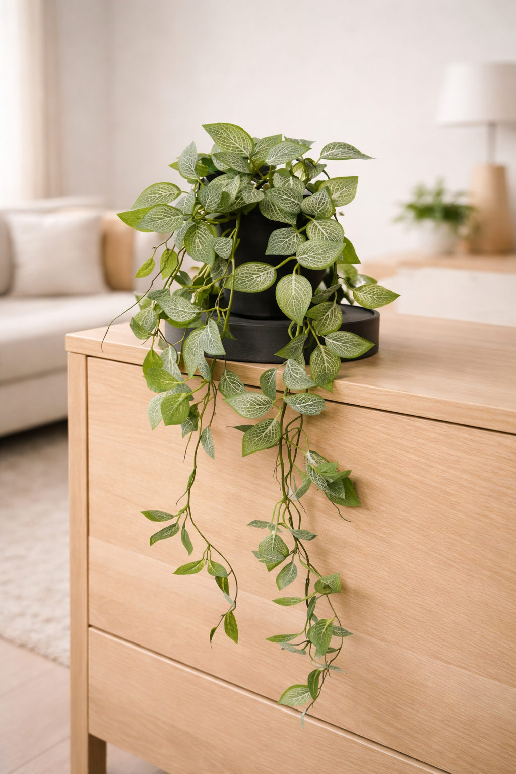 Deze kunst hangplant is dé oplossing voor wie sfeer wil toevoegen zonder tijd te besteden aan verzorging. Ideaal voor drukke huishoudens of ruimtes met weinig daglicht.