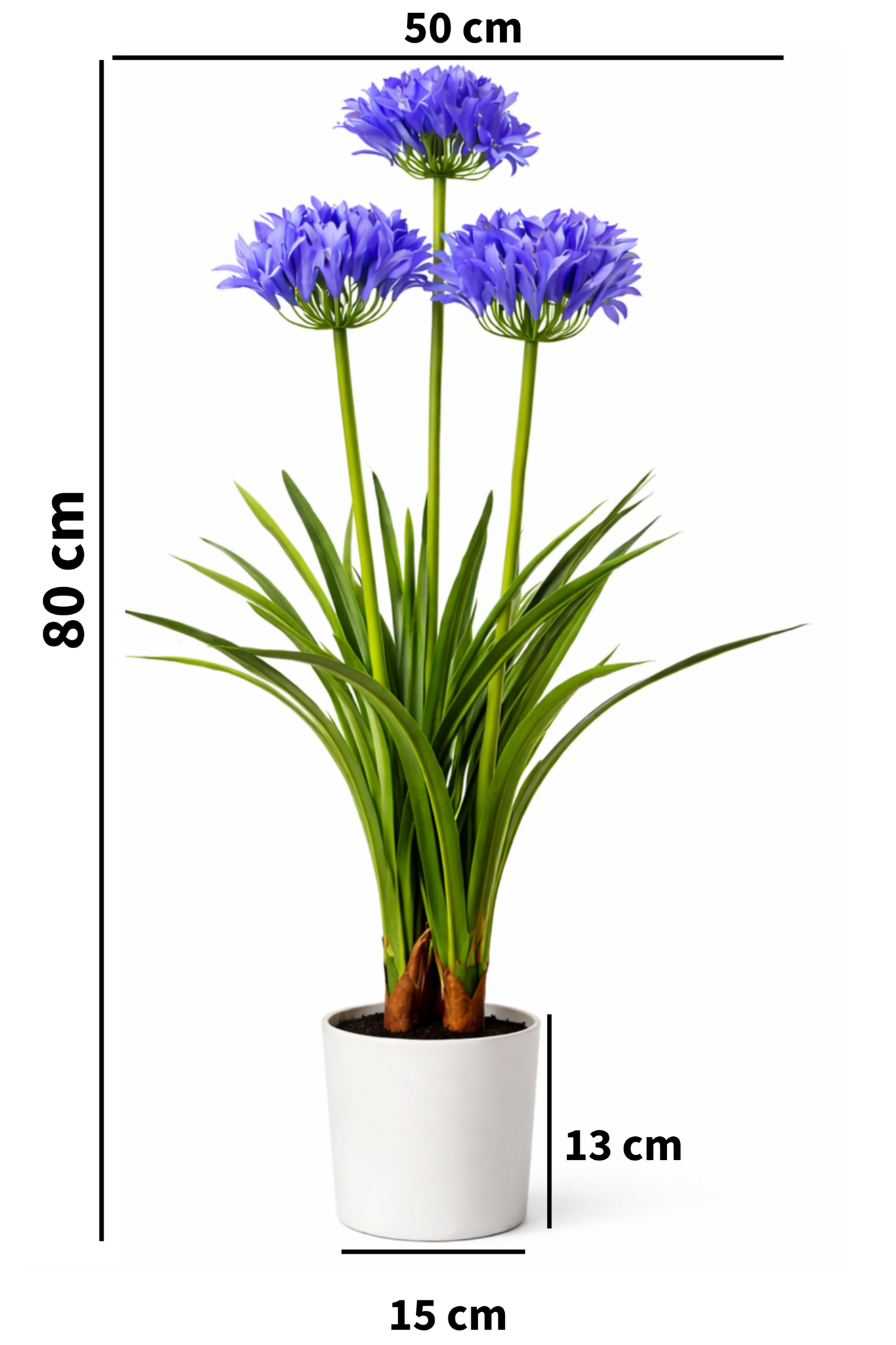 Breng een stijlvolle en rustige sfeer in huis met deze Agapanthus kunstplant in pot. Met een hoogte van 80 cm en een breedte van circa 50 cm is deze kunstplant een echte blikvanger die moeiteloos past in de woonkamer, hal, slaapkamer of op kantoor.