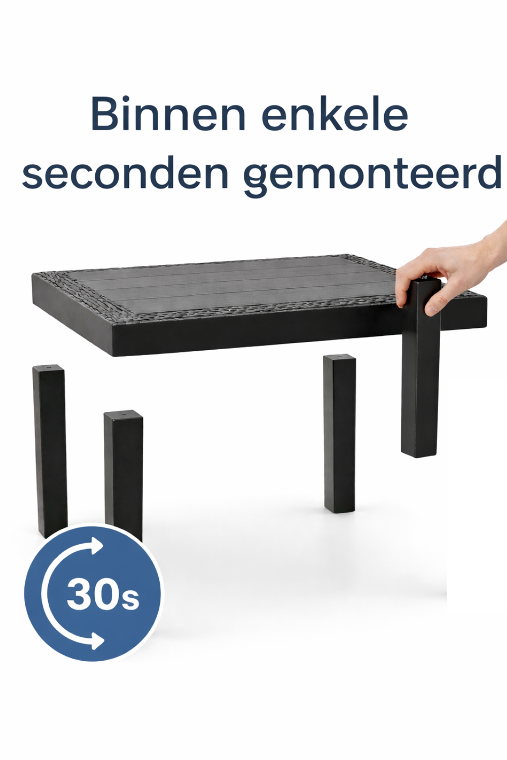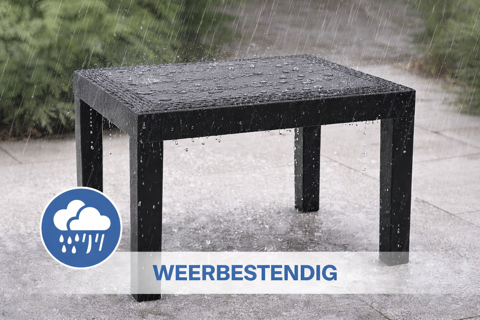 De tafel is vervaardigd uit stevig polypropyleen (PP), waardoor hij weerbestendig, onderhoudsvriendelijk en lichtgewicht is. Het materiaal is eenvoudig schoon te maken en geschikt voor dagelijks buitengebruik. Dankzij het stabiele ontwerp staat de tafel stevig op vrijwel iedere ondergrond.