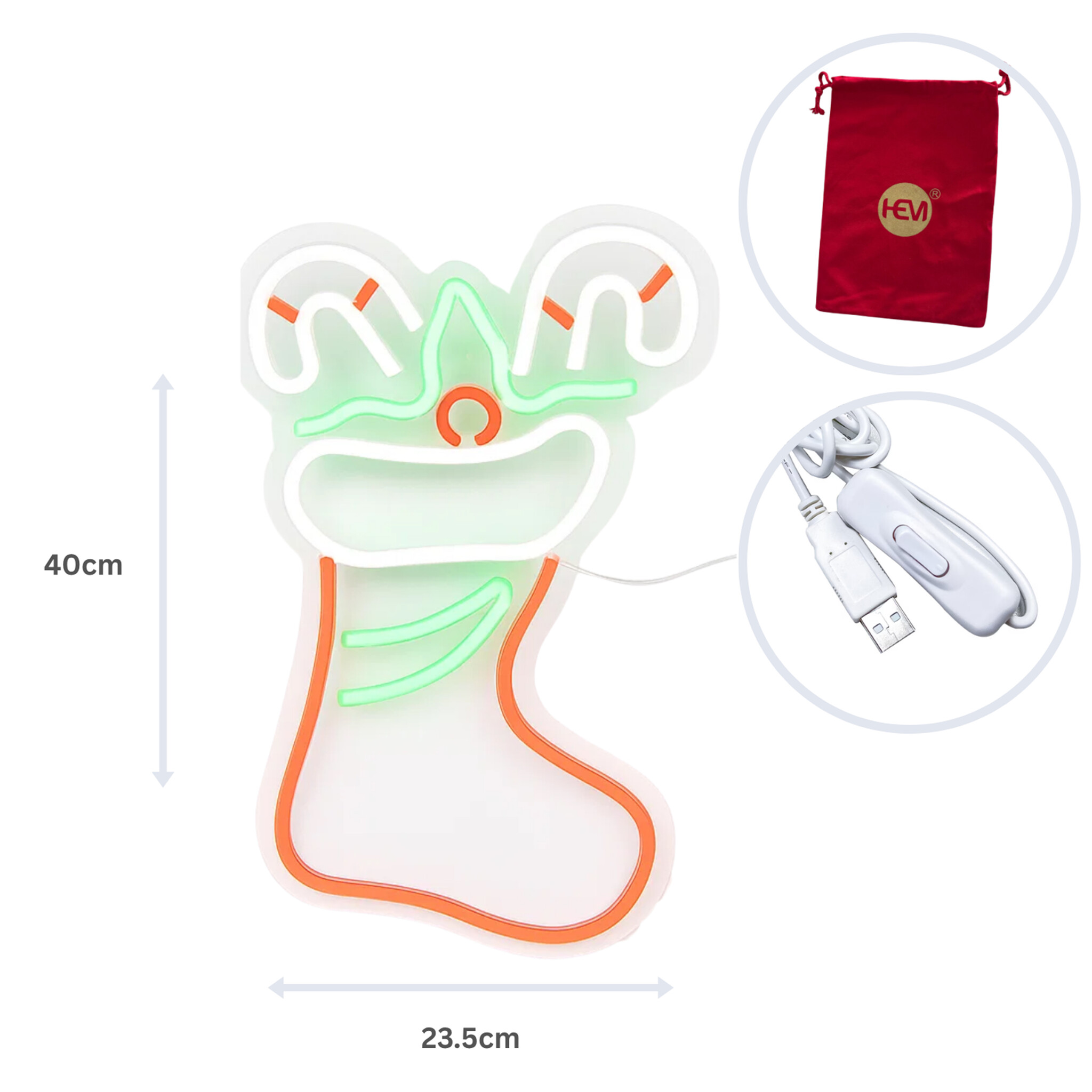 Breng de feestdagen tot leven met de HEM LED Neon Kerstsok wandlamp! Deze vrolijke neon kerstverlichting straalt warm licht uit in groen, rood en wit en zorgt voor instant sfeer in huis. Perfect voor aan de muur, het raam of als etalageverlichting.