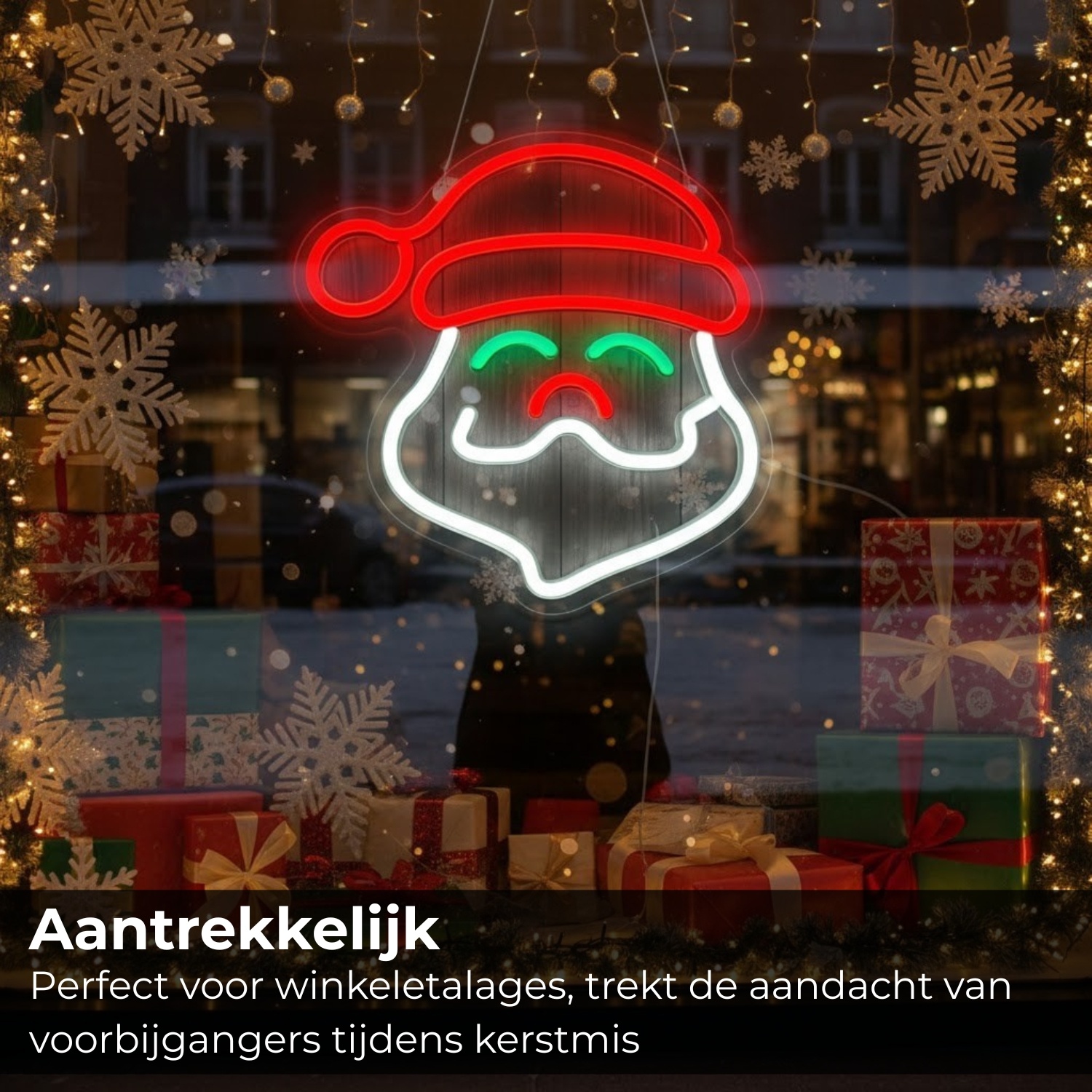 Beschikbaar in 2 kerstontwerpen (Santa-figuren 40x36 cm en 42x35 cm). Energiezuinig, veilig en ideaal als kerstdecoratie binnen.
