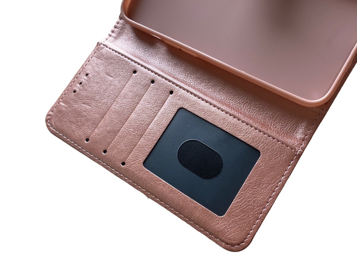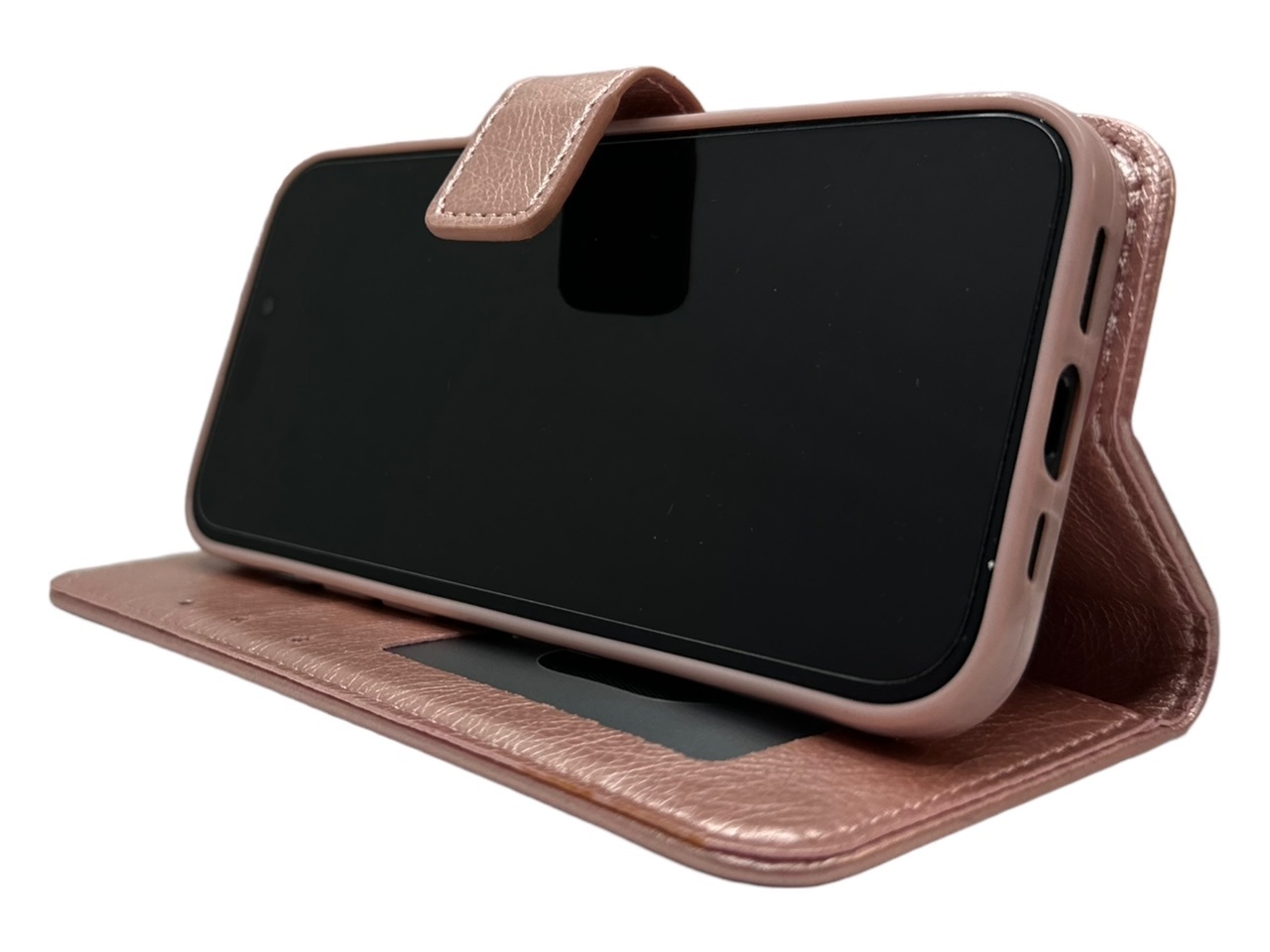 HEM HEM leren Book Case - Geschikt voor iPhone 16 - Hoesje met 3 pasjesuitsnedes - Portemonneehoesje - iPhone 16 hoesje met pasjeshouder - Rose Gold