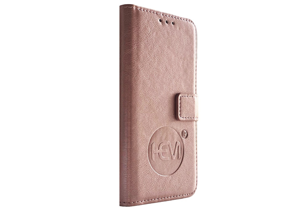 HEM leren Book Case - Geschikt voor iPhone 16 - Hoesje met 3 pasjesuitsnedes - Portemonneehoesje - iPhone 16 hoesje met pasjeshouder - Rose Gold