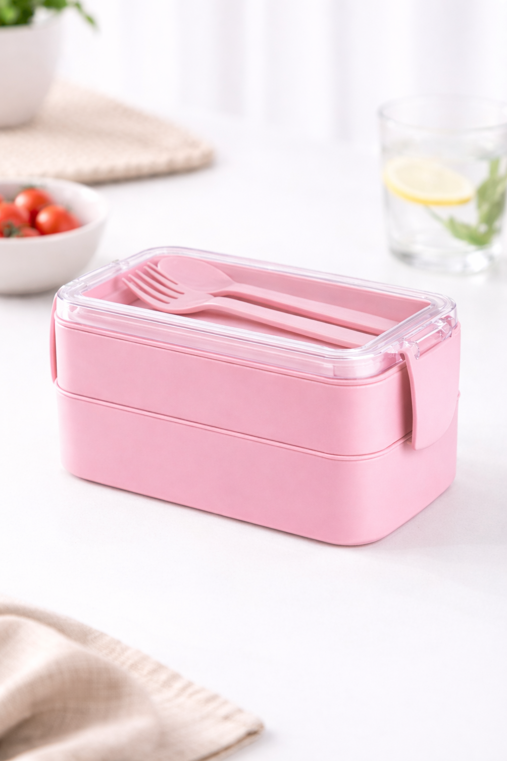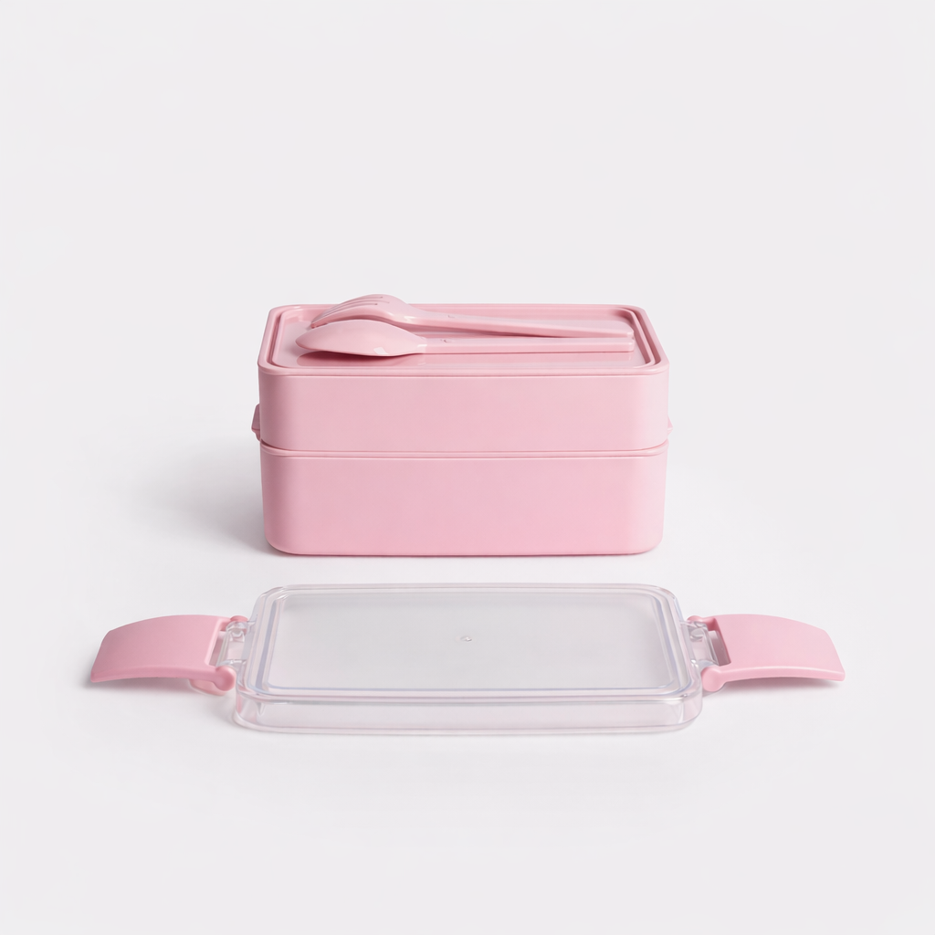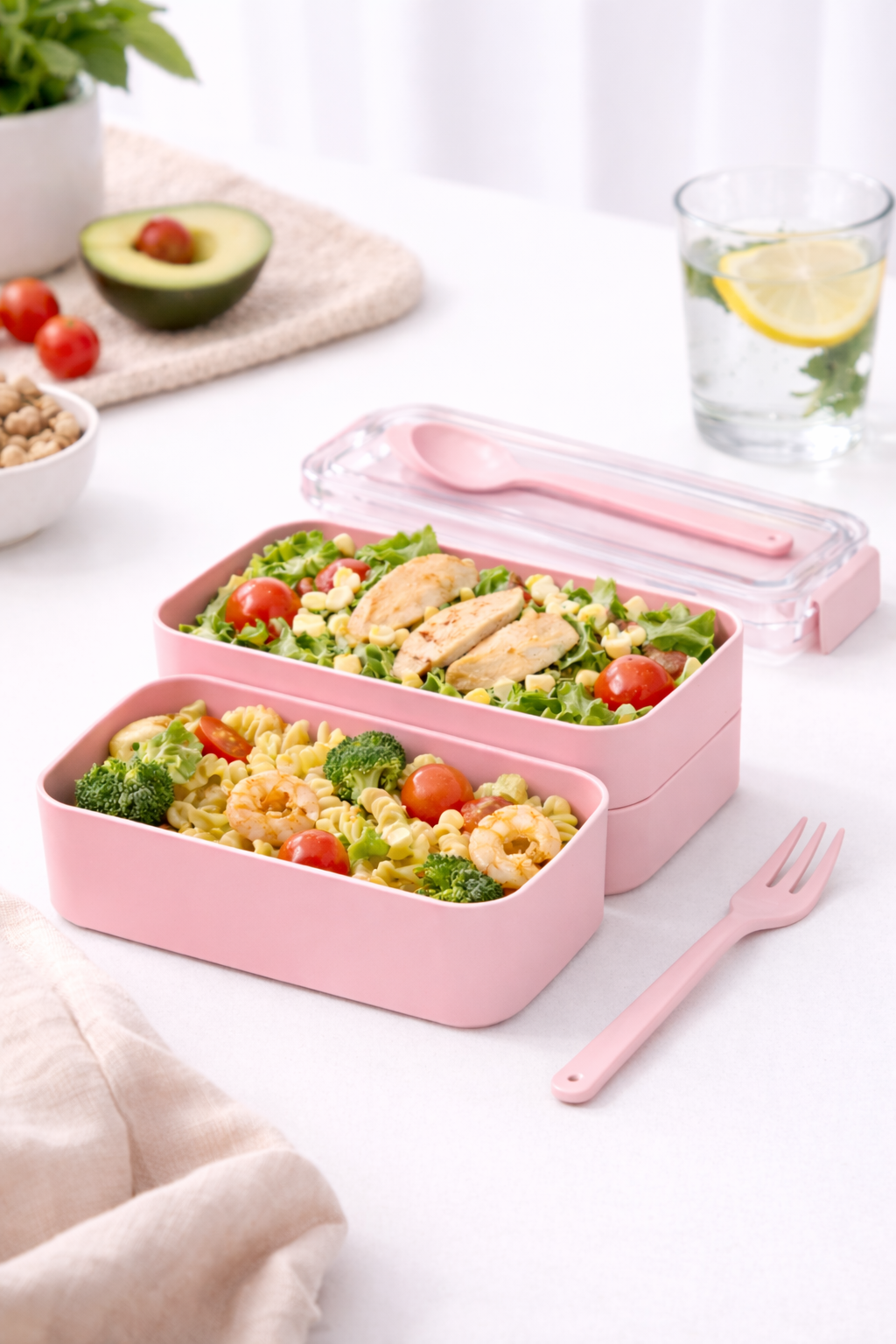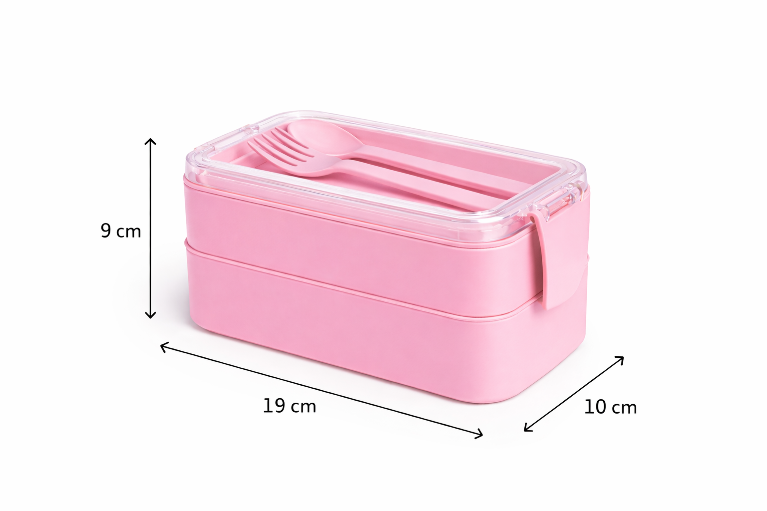 Neem je lunch georganiseerd én in stijl mee met deze roze 2-laags lunchbox inclusief lepel en vork. Dankzij het slimme ontwerp houd je verschillende gerechten gescheiden, terwijl het compacte formaat perfect in je tas past.