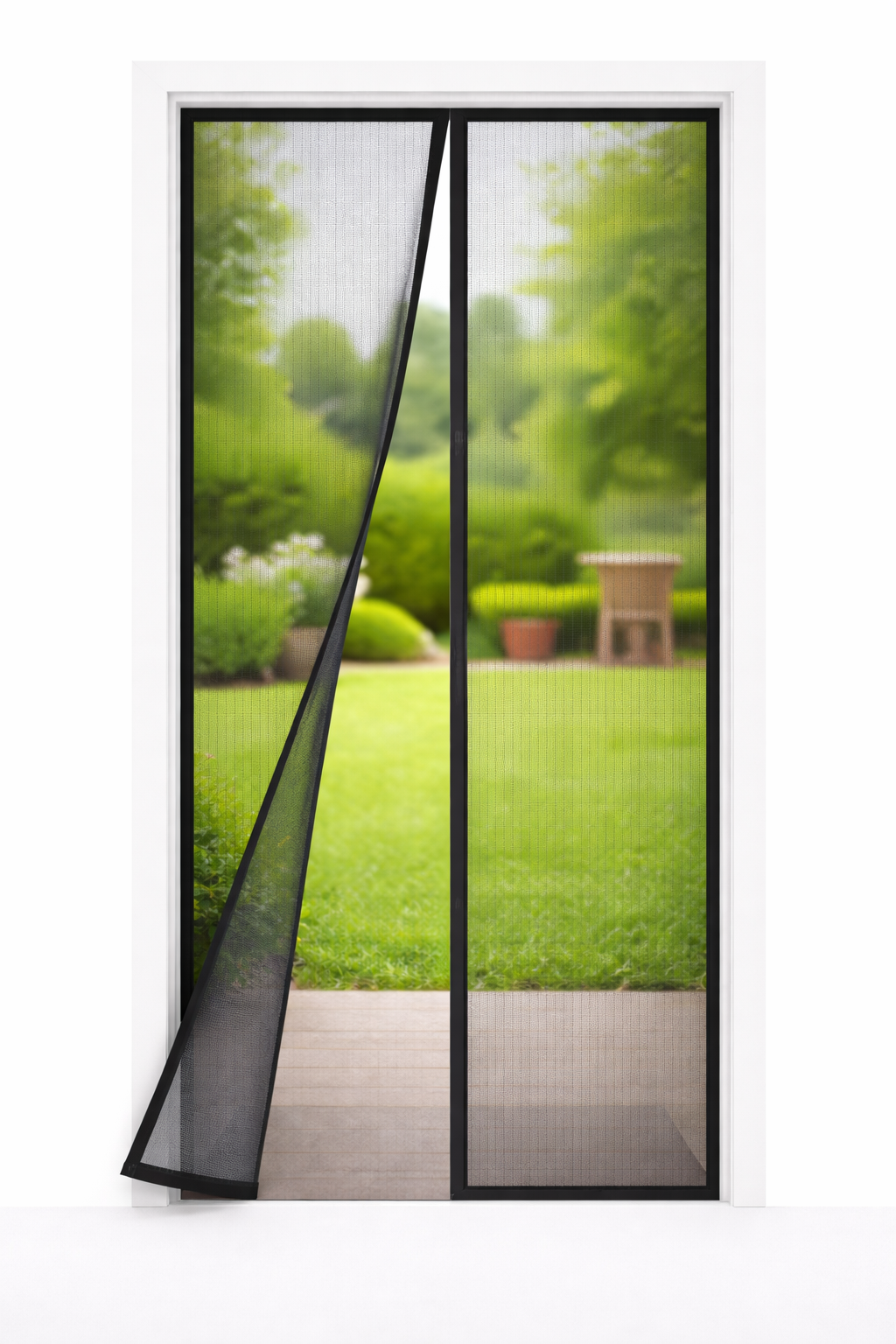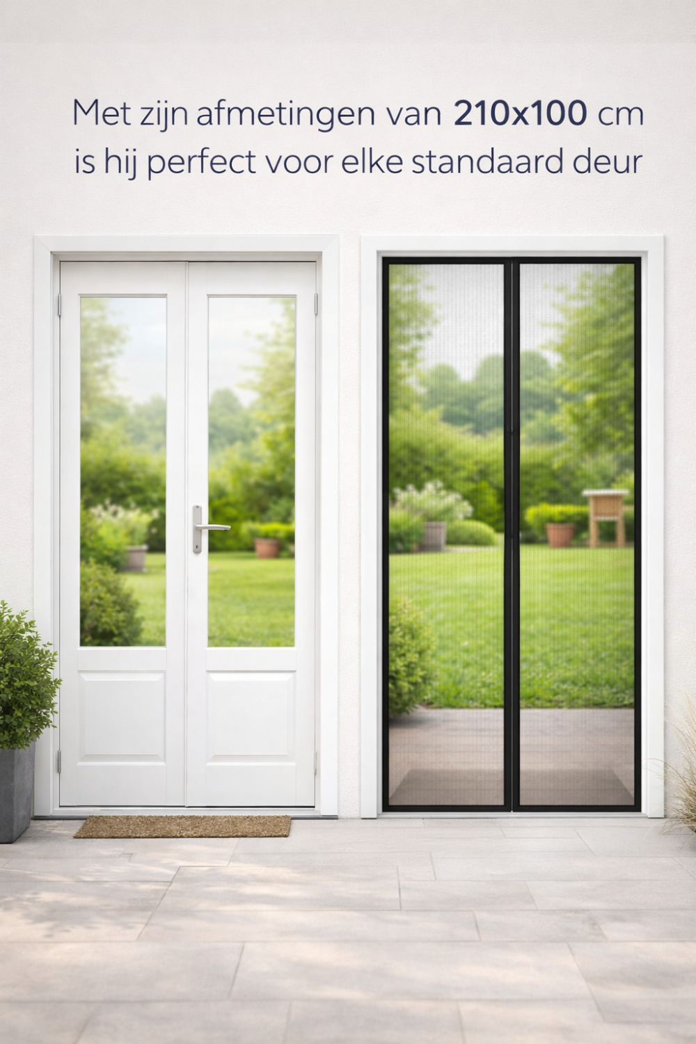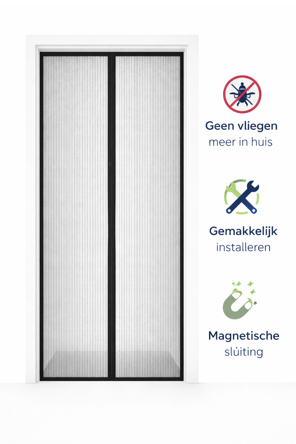 Dit 2-delige vliegengordijn is voorzien van sterke magneten die automatisch sluiten zodra u door de deuropening loopt. Ideaal voor dagelijks gebruik in huis, bij de achterdeur, balkondeur of caravan.
