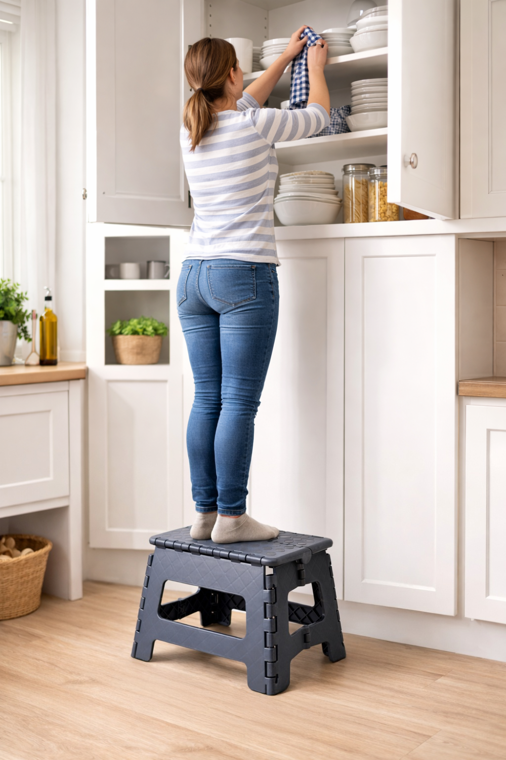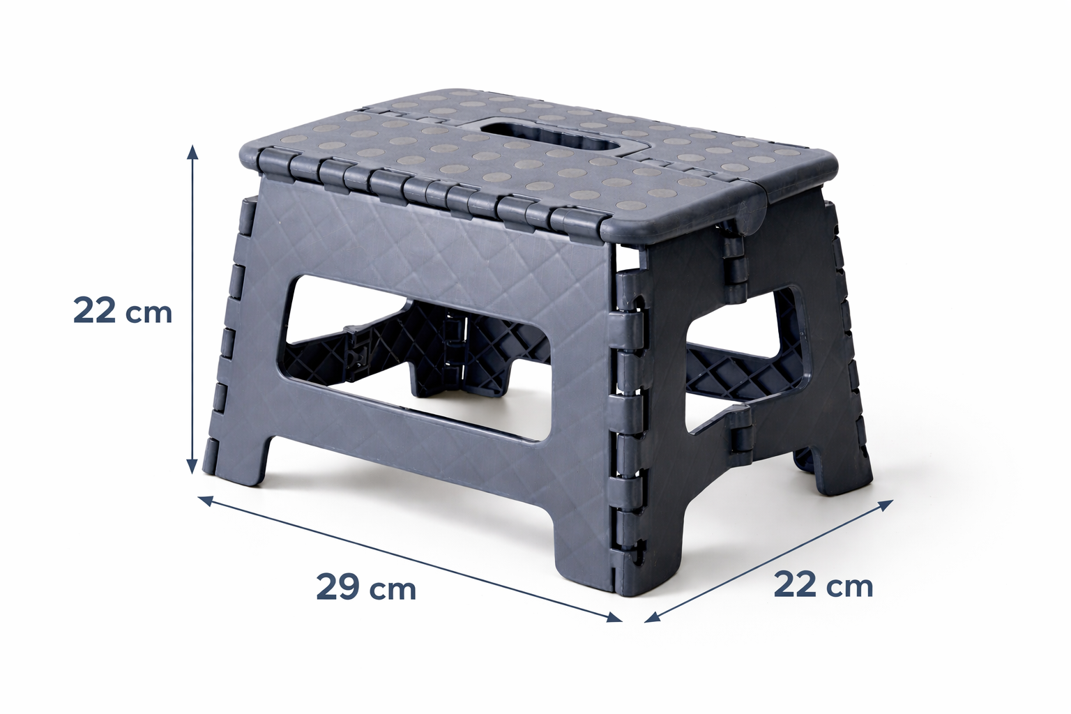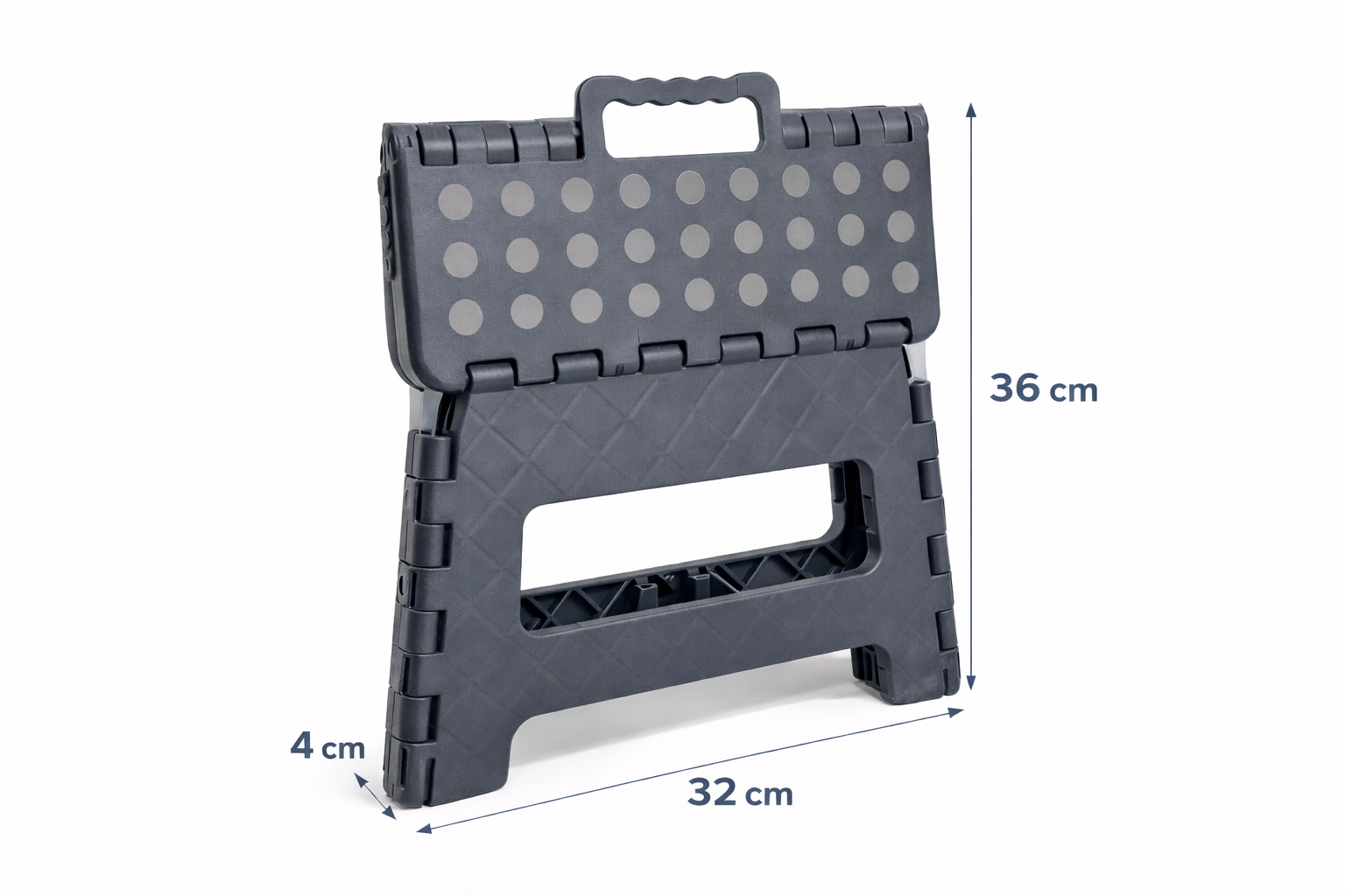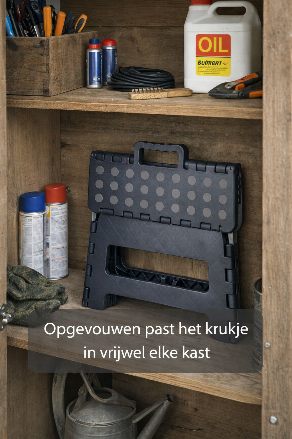 Deze opvouwbare opstapkruk biedt een praktische en veilige oplossing wanneer u net wat extra hoogte nodig heeft. Ideaal voor het pakken van spullen uit hoge kasten, het helpen van kinderen bij de wastafel of als handig hulpmiddel in de keuken, badkamer, camper, caravan of schuur.